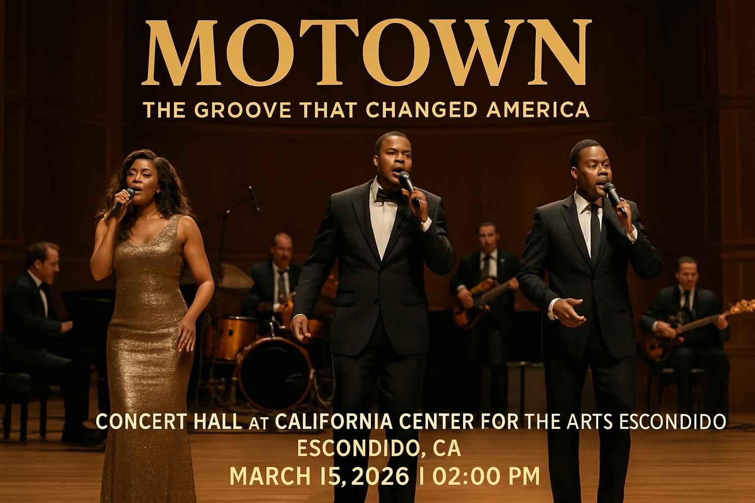 Motown – The Groove that Changed America comes to the Concert Hall at California Center For The Arts Escondido in Escondido CA on March 15 2026 at 2 PM. Celebrate legendary Motown hits live in one of Escondido’s top music venues. Secure exclusive coupon codes and promo discounts for the Motown – The Groove that Changed America event at RSVP Event Agency for unbeatable ticket prices and instant savings today.
