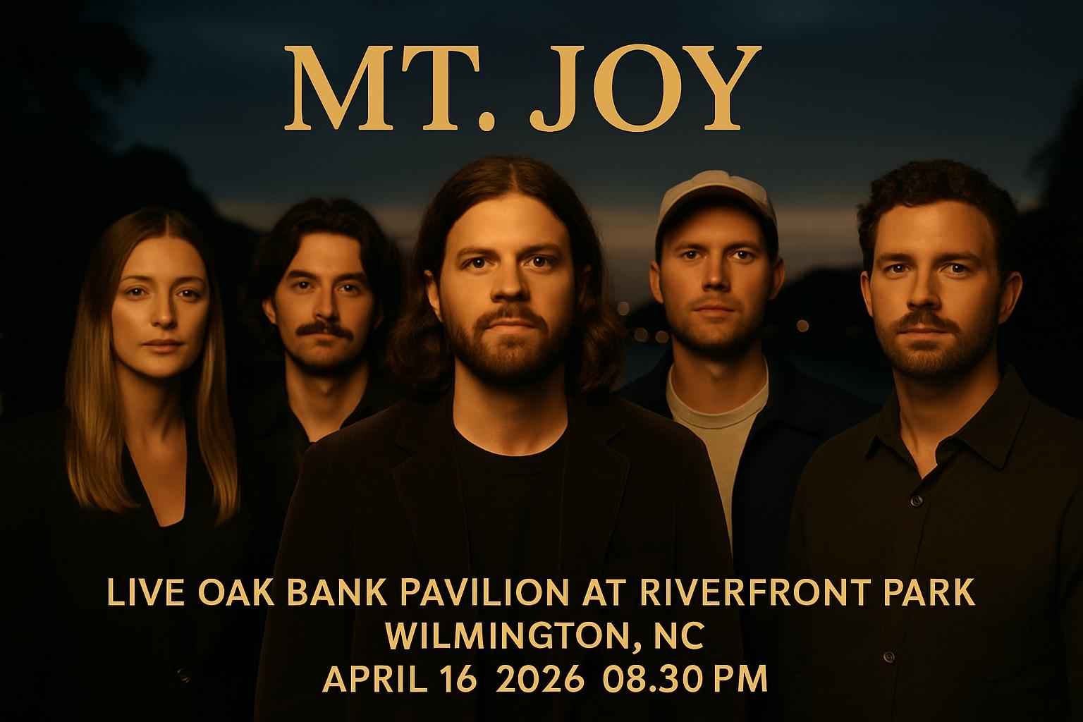 Mt Joy brings acclaimed indie rock to Wilmington NC at Live Oak Bank Pavilion At Riverfront Park on April 16 2026 Enjoy an open-air concert experience with premium sound and stunning views Gates open at 700 PM and the show starts at 0830 PM Secure your spot with discounted tickets available online now
