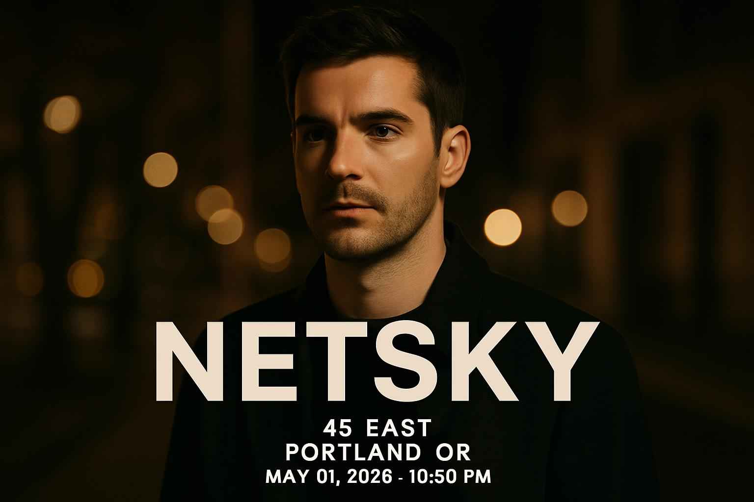 Experience Netsky live at 45 East in Portland OR on May 01 2026 at 10 PM. Secure your spot at one of Portland’s top nightlife events. RSVP Event Agency delivers exclusive coupon codes for Netsky 45 East Portland OR. Discover everything about the event location ticket savings parking and the latest promo codes for this high-energy electronic music night.
