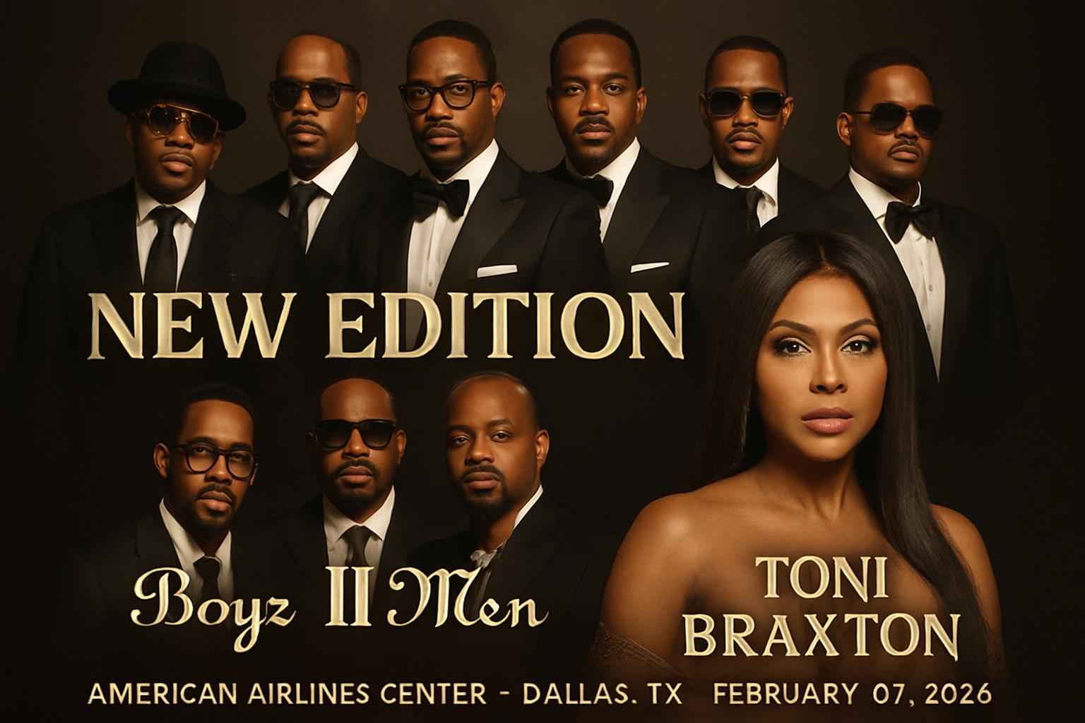 New Edition Boyz II Men and Toni Braxton join forces for a one-night-only R&B concert at American Airlines Center Dallas. This highly anticipated event on February 07 2026 promises powerhouse vocals and classic hits that defined a generation. Fans searching for Dallas concert tickets and event info for New Edition Boyz II Men Toni Braxton will find seat maps parking info and local tips right here. This is your chance to see three legendary acts perform live in the heart of Dallas.