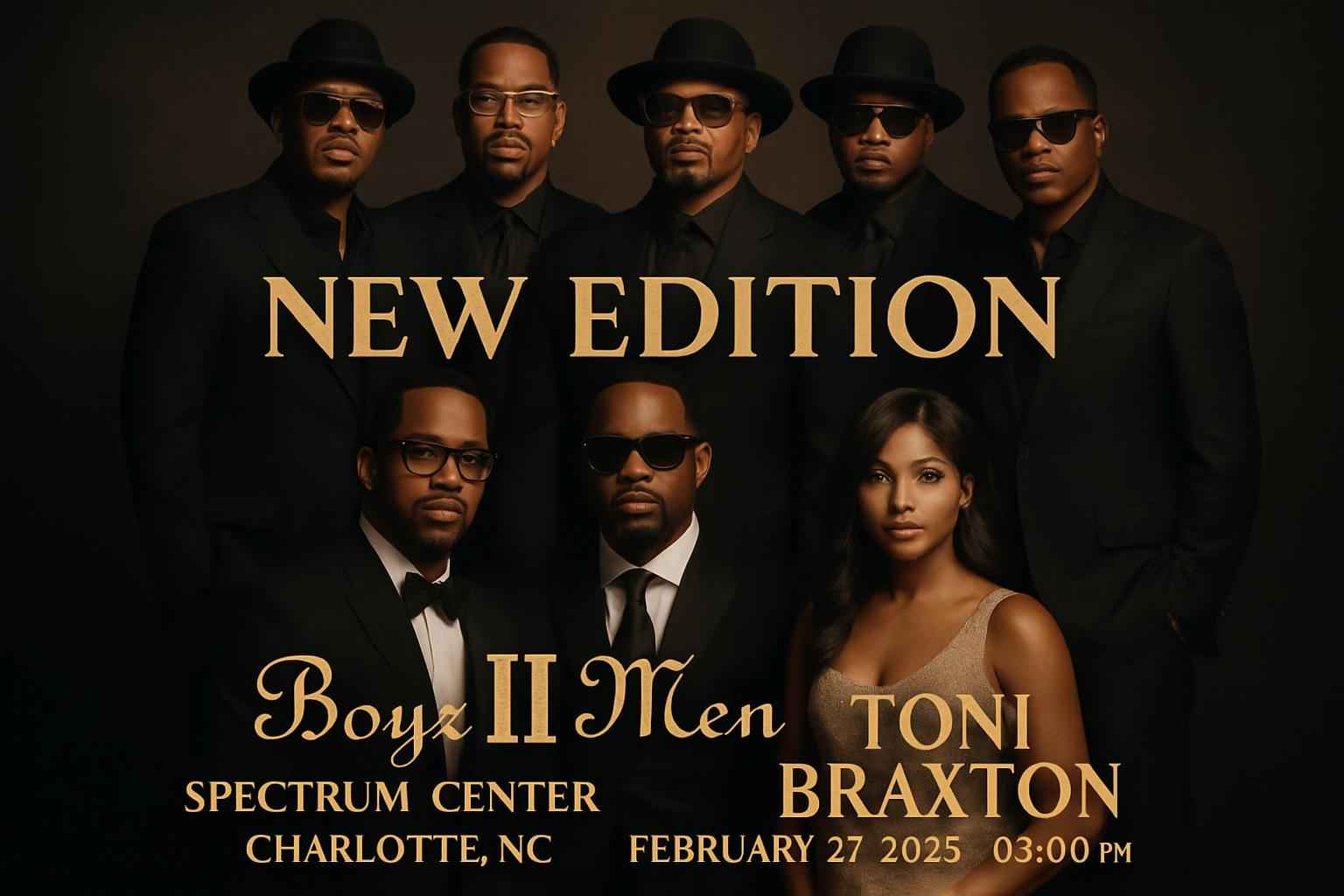 Experience the legendary New Edition, Boyz II Men, and Toni Braxton live at Spectrum Center in Charlotte NC on February 27 2026 at 8:00 PM. This highly anticipated R&B concert brings together chart-topping icons for one unforgettable evening. Secure your tickets with exclusive Spectrum Center coupon codes and maximize savings through RSVP Event Agency.