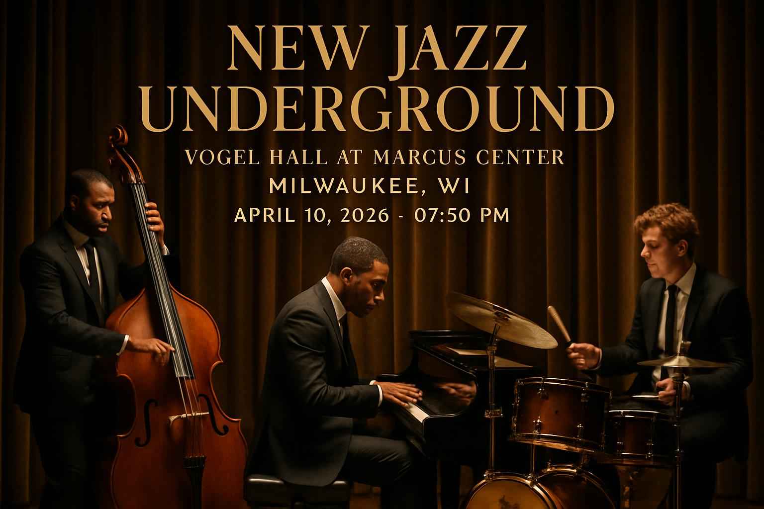 Experience the vibrant sounds of New Jazz Underground at Vogel Hall in the Marcus Center, Milwaukee WI, on April 10 2026 at 0730 PM. This exclusive jazz event features world-class musicians delivering a dynamic live performance in an iconic venue. Discover why jazz fans across Milwaukee and Wisconsin are searching for the best New Jazz Underground tickets, exclusive event promo codes, and insider details to secure their seats early.