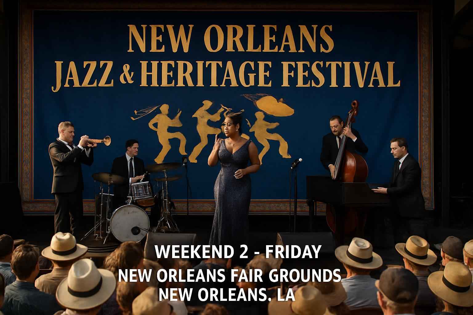 This event is part of the multi-day New Orleans Jazz And Heritage Festival held at New Orleans Fair Grounds featuring live jazz performances, cultural showcases, and local food vendors.