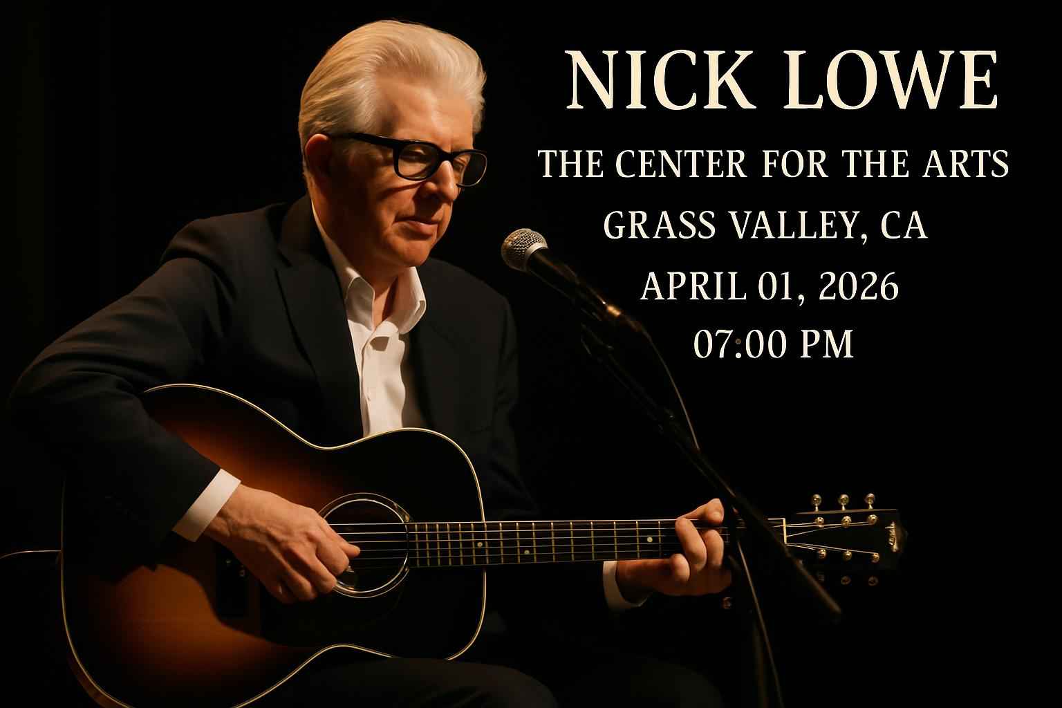 Experience legendary singer-songwriter Nick Lowe live at The Center For The Arts in Grass Valley CA on April 01 2026 at 700 PM. Secure your spot for an unforgettable night of classic hits and musical mastery in one of Northern Californias top live music venues. Discover exclusive RSVP Event Agency promo codes to unlock the best ticket prices and enjoy premium access for this must-see show.