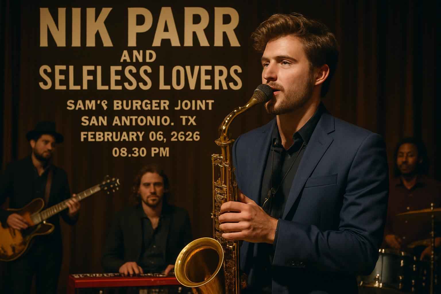 Experience high-energy rock and soul as Nik Parr and The Selfless Lovers take the stage at Sam’s Burger Joint in San Antonio TX on February 6 2026 at 830 PM. Discover ticket savings with exclusive promo codes from RSVP Event Agency and secure your spot at one of San Antonio’s top live music venues. This local concert event brings acclaimed musicianship and unforgettable performances to the heart of the city.