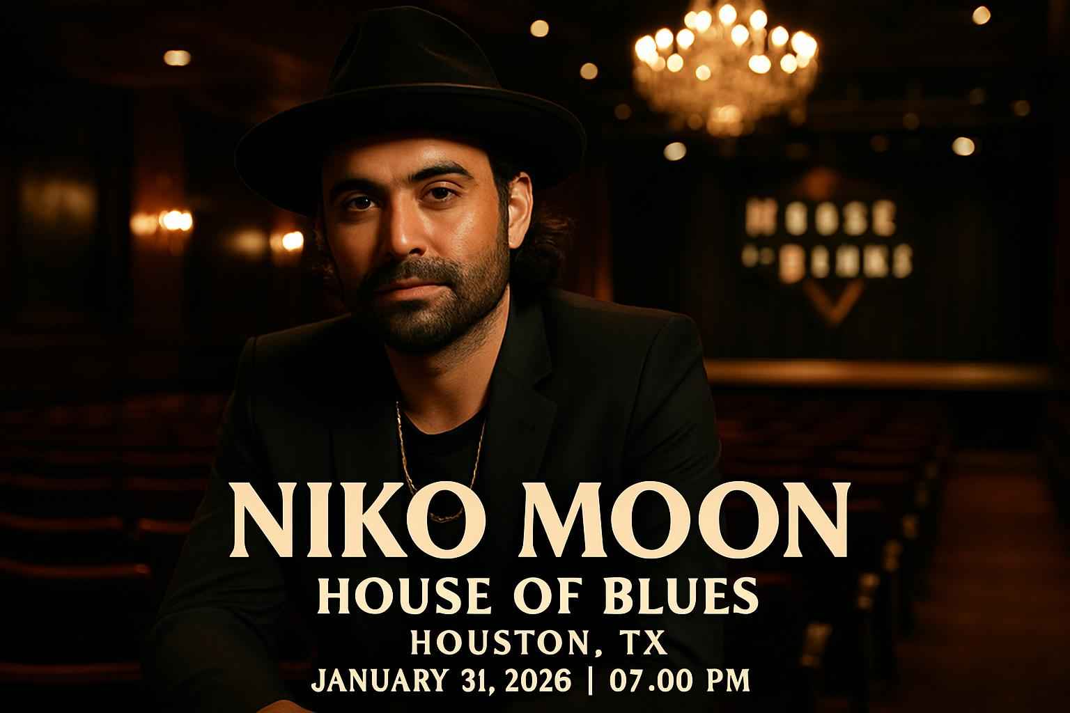 Experience the high-energy country sound of Niko Moon live at House Of Blues Houston on January 31 2026 at 7:00 PM. This highly anticipated Houston concert draws fans seeking unforgettable music and exclusive access. Secure unbeatable ticket discounts through RSVP Event Agency and enjoy the atmosphere of one of Houston TXs most iconic music venues. Take advantage of limited-time Niko Moon promo codes to maximize your savings today.