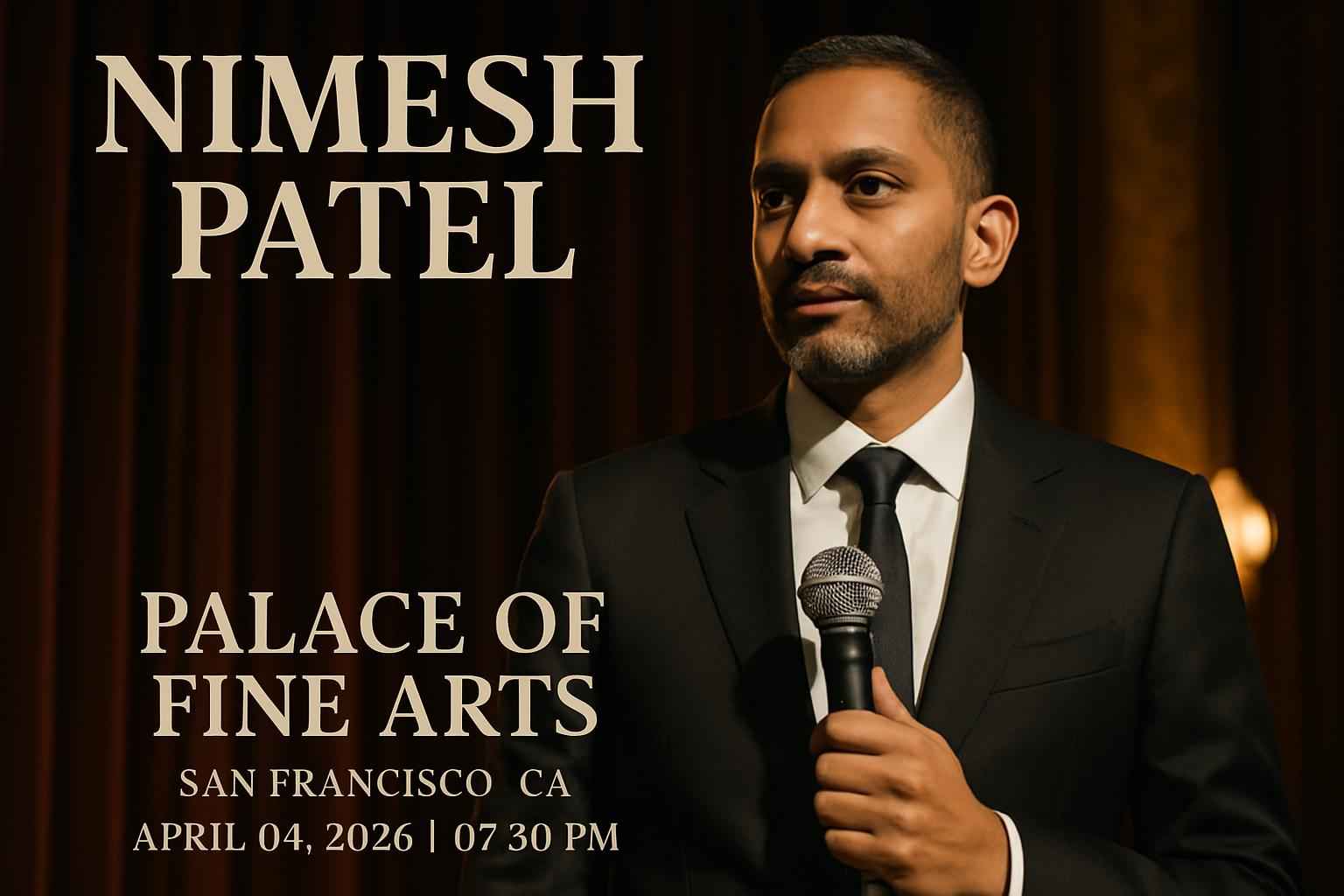 Nimesh Patel brings his acclaimed comedy tour to the iconic Palace Of Fine Arts Theatre in San Francisco. The show starts at 7:30 PM on April 04, 2026. Expect sharp wit, fresh material, and an unforgettable night in one of the citys most historic venues. The Palace Of Fine Arts is located at 3301 Lyon St, with easy access from Marina District and public transport.