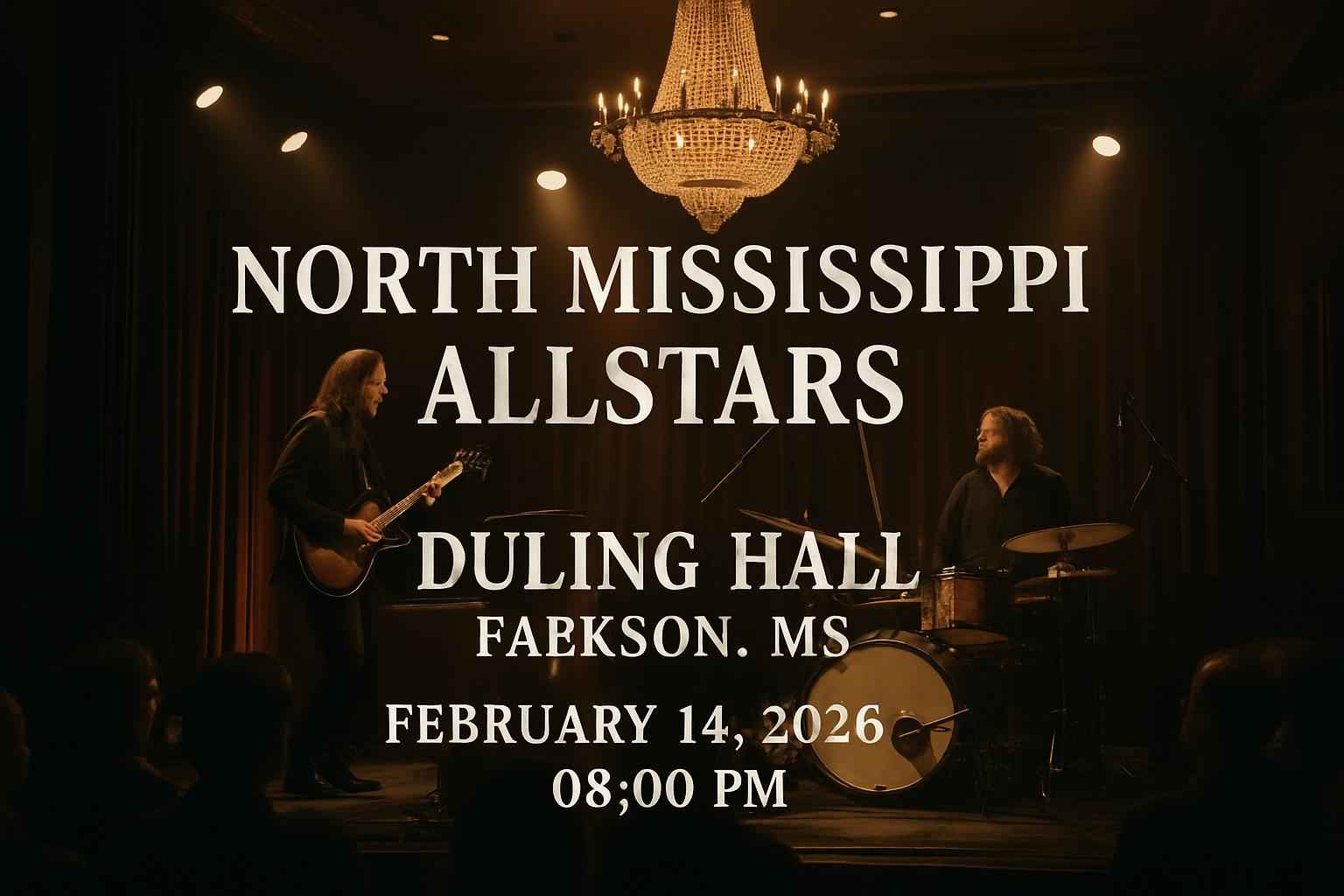 Experience a legendary night with North Mississippi Allstars at Duling Hall in Jackson MS on February 14 2026 at 8 PM. Secure your spot at one of the most anticipated events in Jackson featuring authentic Southern rock and blues in a historic venue. RSVP Event Agency delivers verified promo codes and exclusive discounts so you save big on your tickets. Join music fans from across Mississippi for an unforgettable live show in the heart of Jackson.