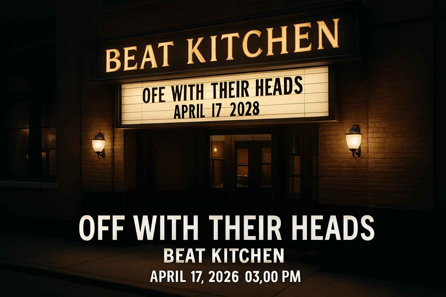 Experience Off With Their Heads live at Beat Kitchen in Chicago IL on April 17 2026 at 8 PM. Discover exclusive promo codes and secure your spot at this highly anticipated punk rock show. RSVP Event Agency delivers verified coupon codes for Off With Their Heads events in Chicago helping fans save money on tickets and access up-to-date event details. Whether you are a Chicago local or traveling to the city you can find the best deals for Beat Kitchen concerts right here.