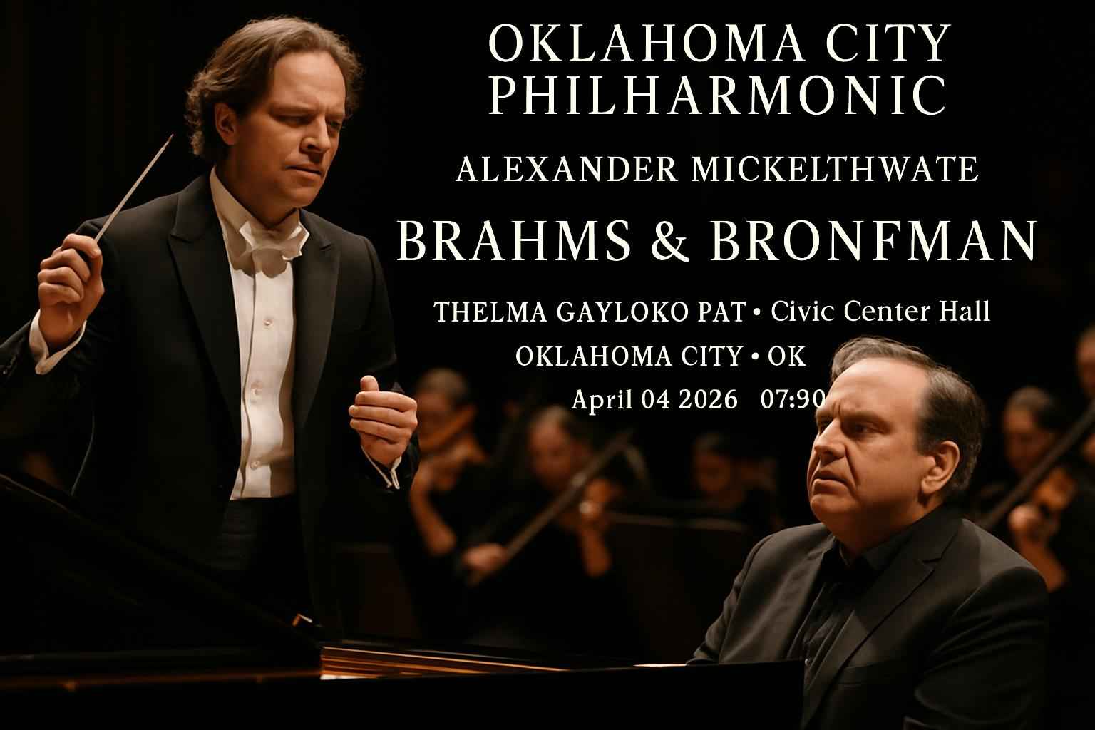 Experience the Oklahoma City Philharmonic with Alexander Mickelthwate conducting Brahms and Bronfman at Thelma Gaylord PAT at Civic Center Music Hall on April 4 2026 at 730 PM. This highly anticipated Oklahoma City event brings together world-class classical music, celebrated conductor Alexander Mickelthwate, and renowned pianist Yefim Bronfman. Enjoy the best seats and maximize savings with verified coupon codes from RSVP Event Agency for this unforgettable performance in Oklahoma City.