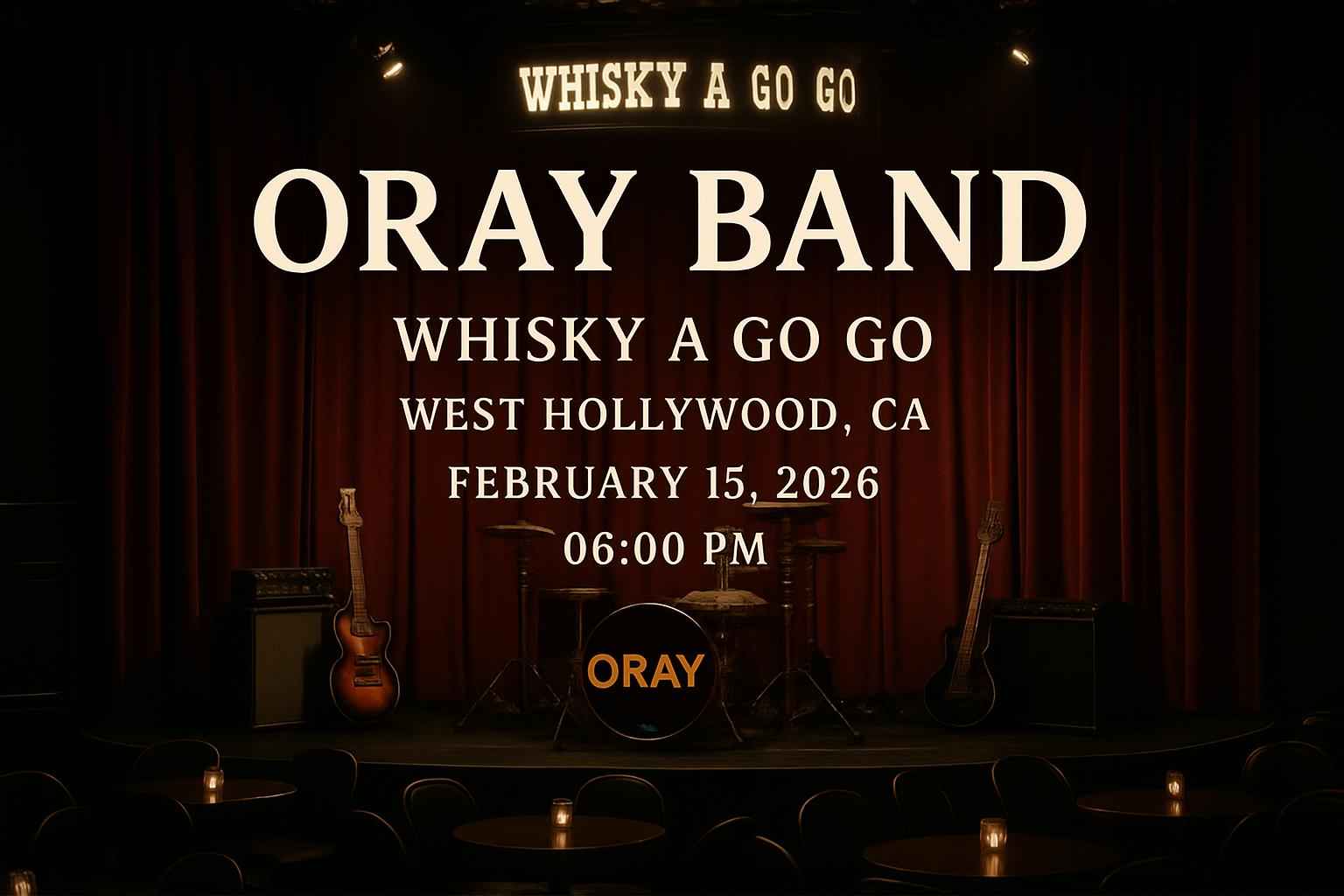 Oray Band is scheduled to perform at 600 PM on February 15 2026 at Whisky A Go Go in West Hollywood.