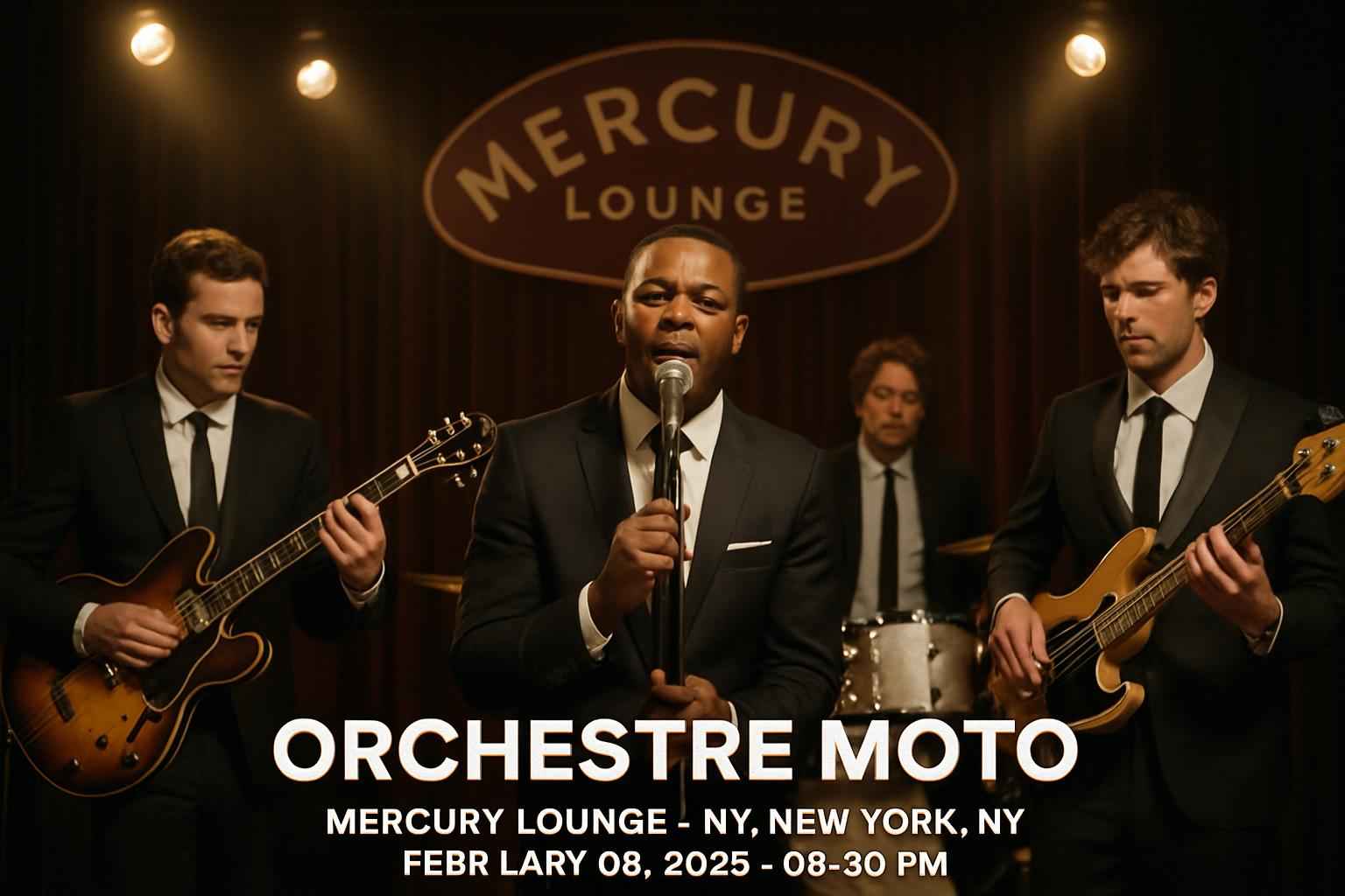 Orchestre Moto takes the stage at 8:00 PM on February 8, 2026. Arrive early for the best entry experience at Mercury Lounge NY.