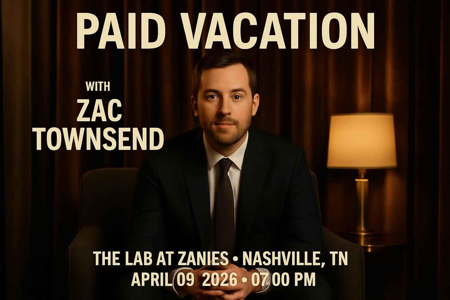 Experience Paid Vacation With Zac Townsend at The Lab at Zanies in Nashville TN on April 09 2026 at 700 PM. Secure your spot at one of Nashville’s top comedy events and enjoy a night filled with laughter and unforgettable entertainment. Attendees frequently search for exclusive promo codes and ticket discounts—RSVP Event Agency is your trusted local source for verified coupon codes and special ticket offers for Zac Townsend live in Nashville.
