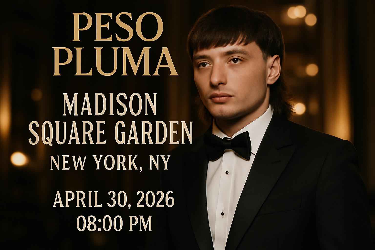 Peso Pluma will take the stage at Madison Square Garden on April 30 2026 at 8:00 PM. Fans across New York and the tri-state area are searching for the best tickets and ways to save on this highly anticipated concert. Located at 4 Pennsylvania Plaza in Midtown Manhattan the venue offers easy access by subway and bus and is famous for hosting top artists and sold-out Latin music events.