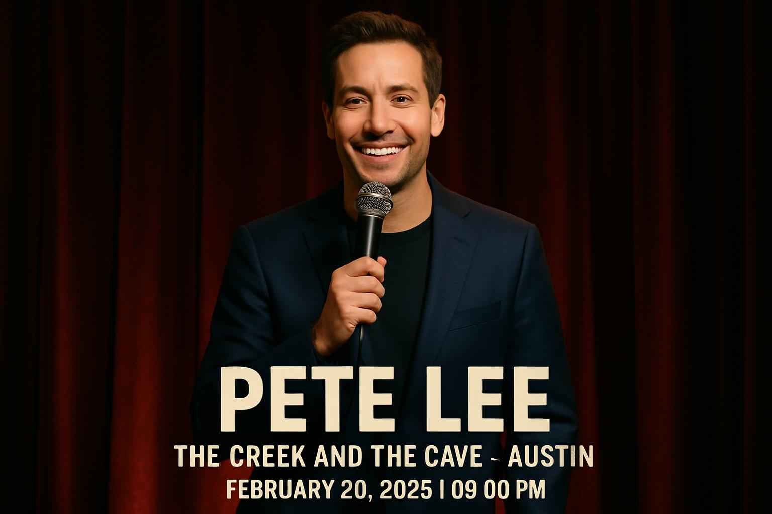 Experience top-tier stand-up comedy at Pete Lee – The Creek and The Cave in Austin TX on February 20 2026 at 9 PM. Secure exclusive Pete Lee Austin tickets with verified coupon codes from RSVP Event Agency for instant savings. This event draws comedy fans across Texas searching for Pete Lee promo codes and last-minute ticket discounts. Lock in your seat at this highly anticipated show today for the best value and seating selection.