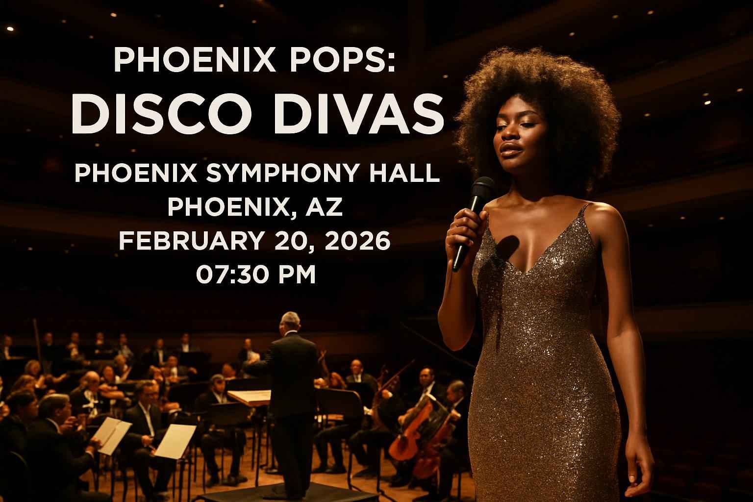 Experience Phoenix Pops Disco Divas at Phoenix Symphony Hall, Phoenix AZ, on February 20, 2026, at 7:30 PM. Enjoy iconic disco hits performed by the Phoenix Pops orchestra and vocalists. Secure exclusive discount tickets and promo codes via RSVP Event Agency for the best prices, easy booking, and special offers. Doors open at 6:30 PM.