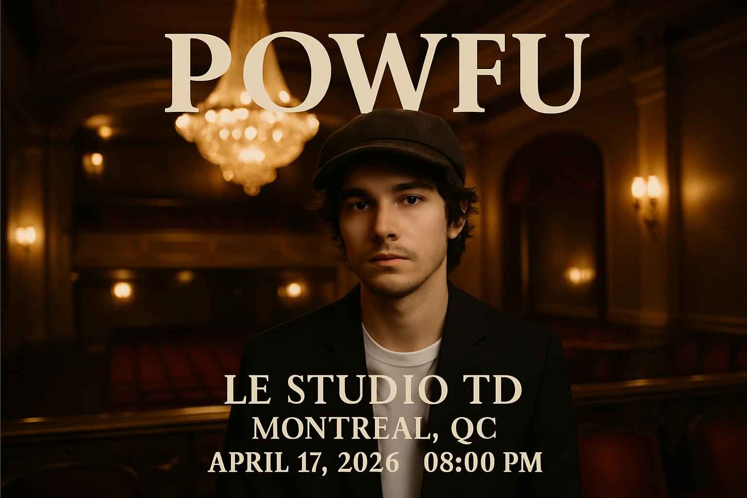 Experience Powfu live at Le Studio TD in Montreal QC on April 17 2026 at 8 PM. Secure your spot for an exclusive night as Powfu brings viral hits and new tracks to the heart of the city. RSVP Event Agency offers verified promo codes and unbeatable ticket discounts for this much-anticipated concert. Discover local fan perks with our Montreal-exclusive deals and enjoy seamless access to the top-rated event of the spring.
