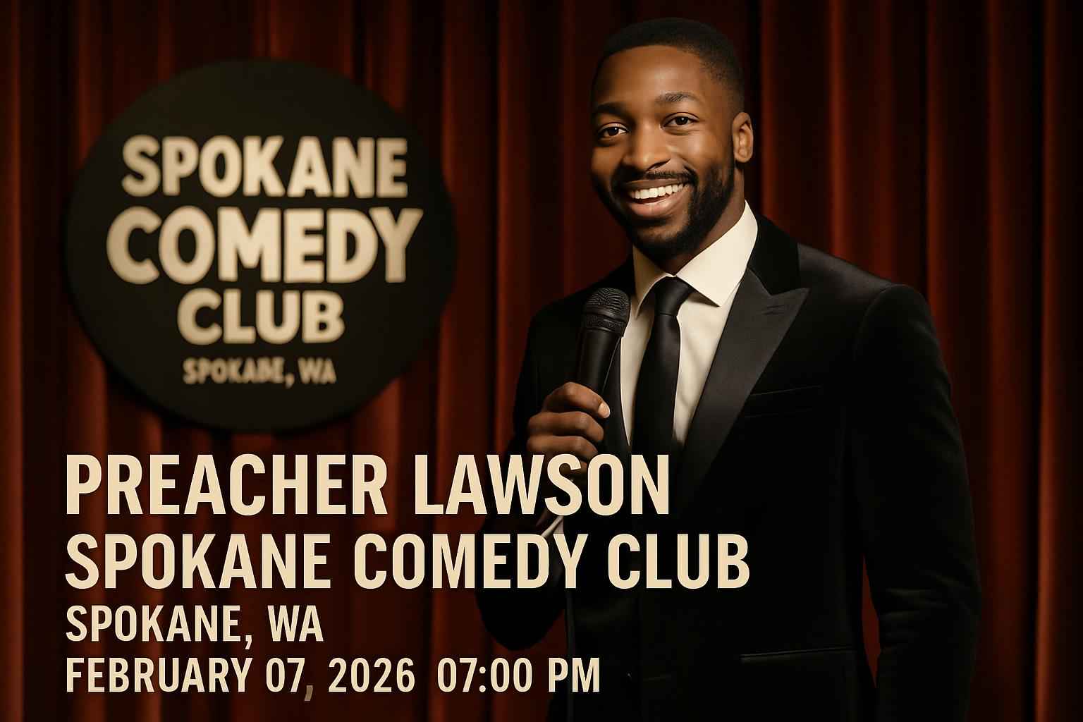 The Preacher Lawson show at Spokane Comedy Club begins at 7 PM on February 07 2026. Arrive early for the best seating and check-in experience.