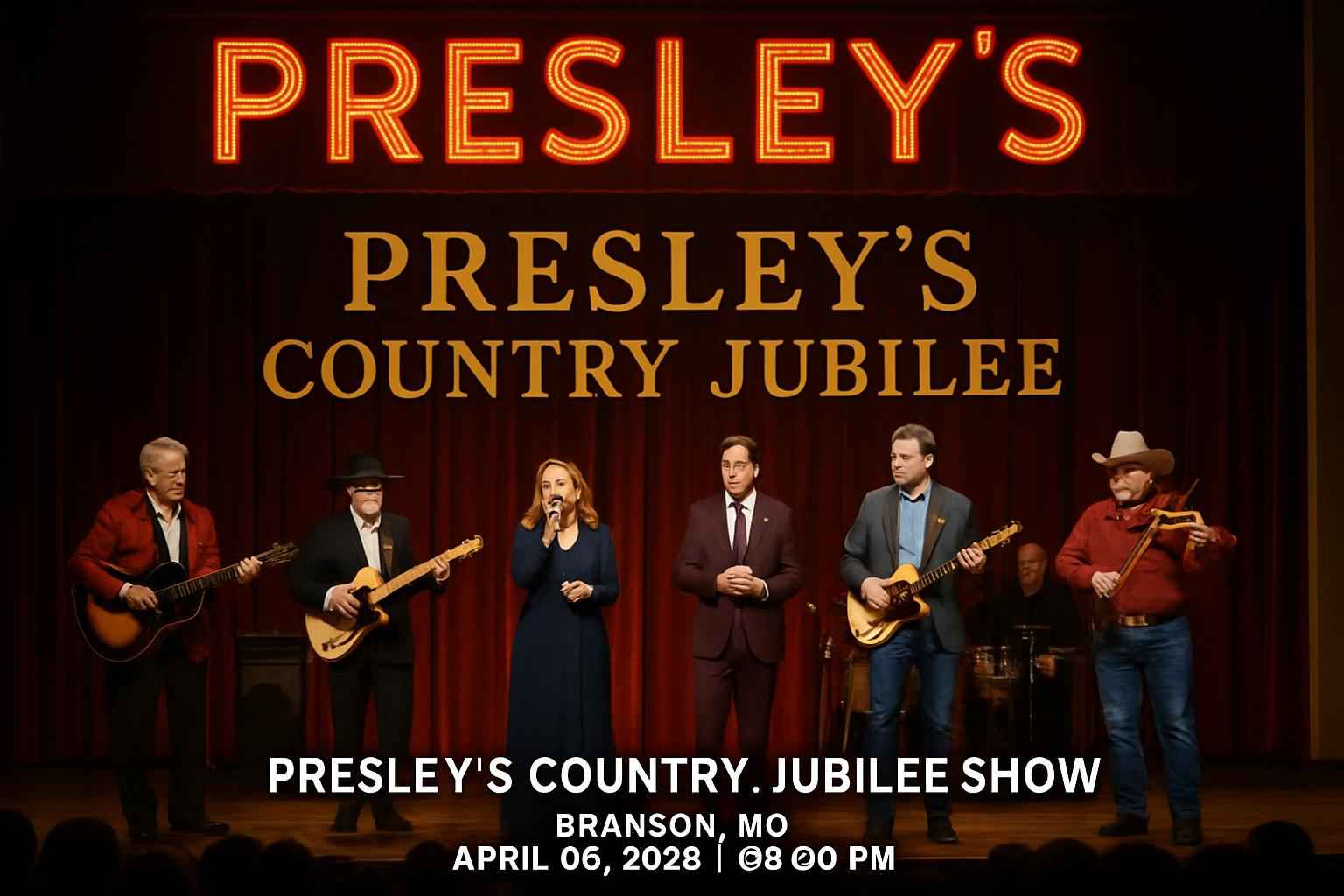 Presleys Country Jubilee Show takes center stage at Presleys Country Jubilee Theatre located on Highway 76 in Branson MO. Doors open at 7 PM for this 8 PM show on April 06 2026. Enjoy a family-friendly atmosphere featuring classic country hits comedy acts and Ozark hospitality. The show is well-known for its multi-generational performers and authentic Branson music experience.