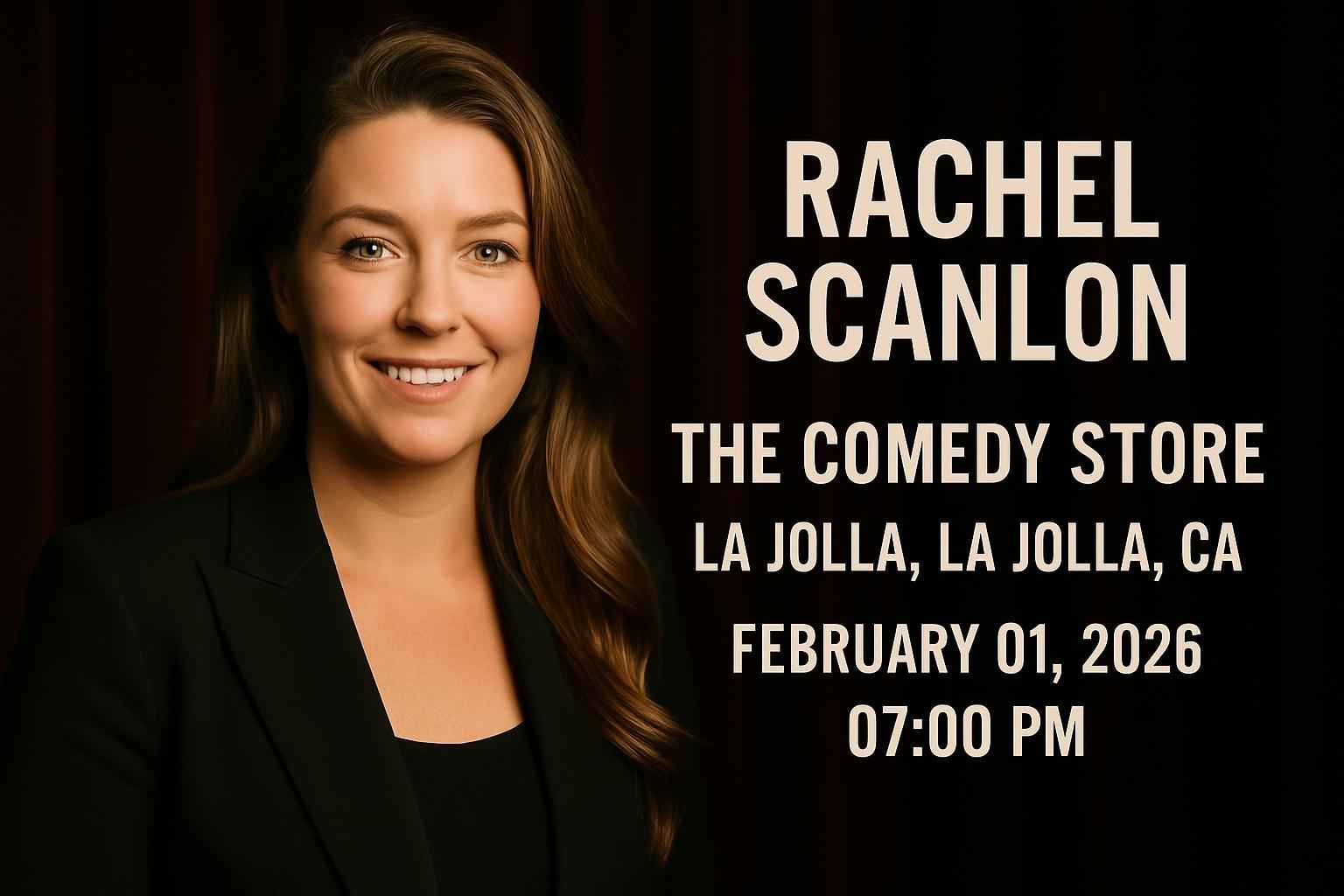 Experience Rachel Scanlon live at The Comedy Store – La Jolla in La Jolla CA on February 01 2026 at 7 PM. Get exclusive access to the best verified promo codes for Rachel Scanlon tickets through RSVP Event Agency. Save on your night out with local discounts and secure your seat for an unforgettable comedy show in San Diego County. Find easy ticket deals and trusted event info to plan your visit today.