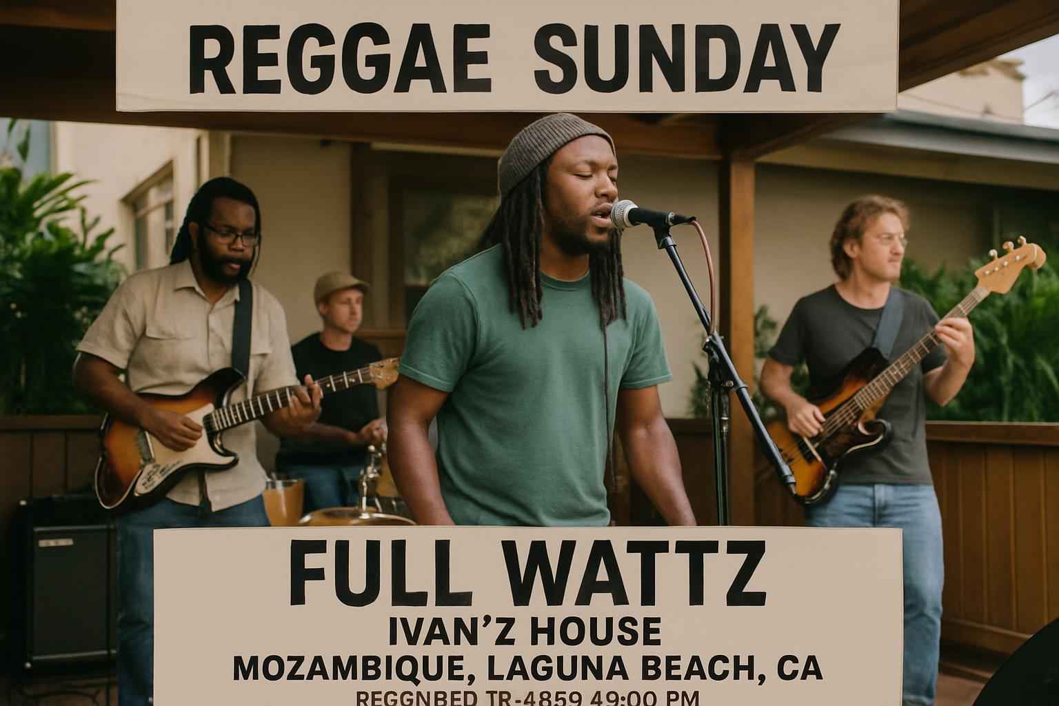 Reggae Sunday Full Wattz Ivan’z House at Mozambique is a premier live music event featuring high-energy reggae performances at a top-rated Laguna Beach venue. Doors open at 6 PM and music starts at 7 PM offering a full night of unforgettable beats and island-inspired vibes. Mozambique is located at 1740 S Coast Hwy Laguna Beach CA 92651 and is known for hosting the best in live reggae and Caribbean cuisine. Secure your spot for this popular Laguna Beach music event.