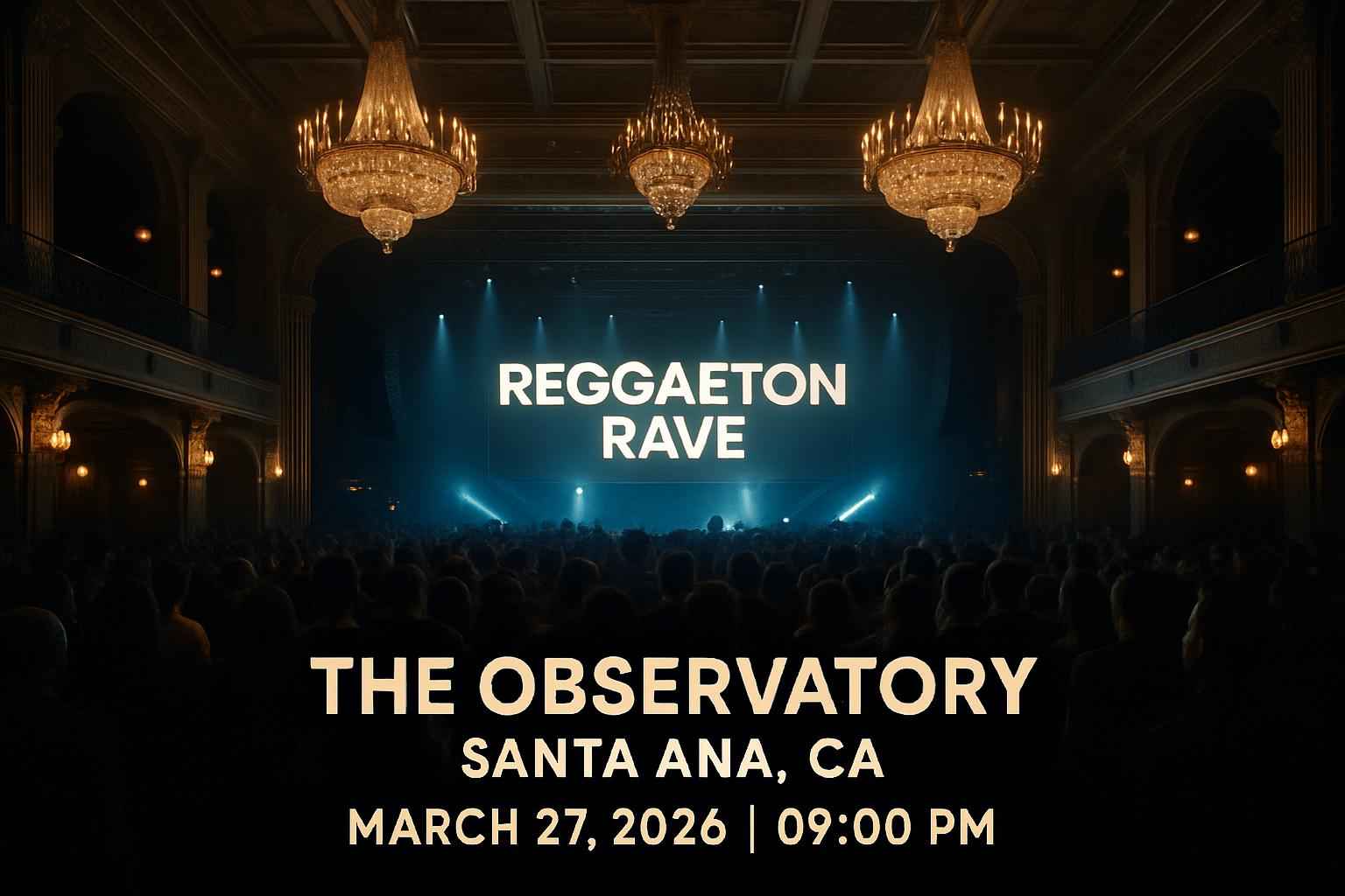 Reggaeton Rave is scheduled for March 27 2026 at 9:00 PM at The Observatory Santa Ana.
