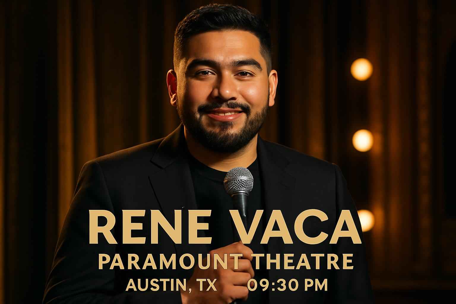 Experience a night of comedy with Rene Vaca at Paramount Theatre in Austin TX on April 17 2026 at 0930 PM. Discover exclusive Rene Vaca Paramount Theatre Austin TX coupon codes and save instantly on your ticket purchase through RSVP Event Agency. Find reliable event details seating options and the lowest ticket prices for this one-night-only performance in the heart of downtown Austin.