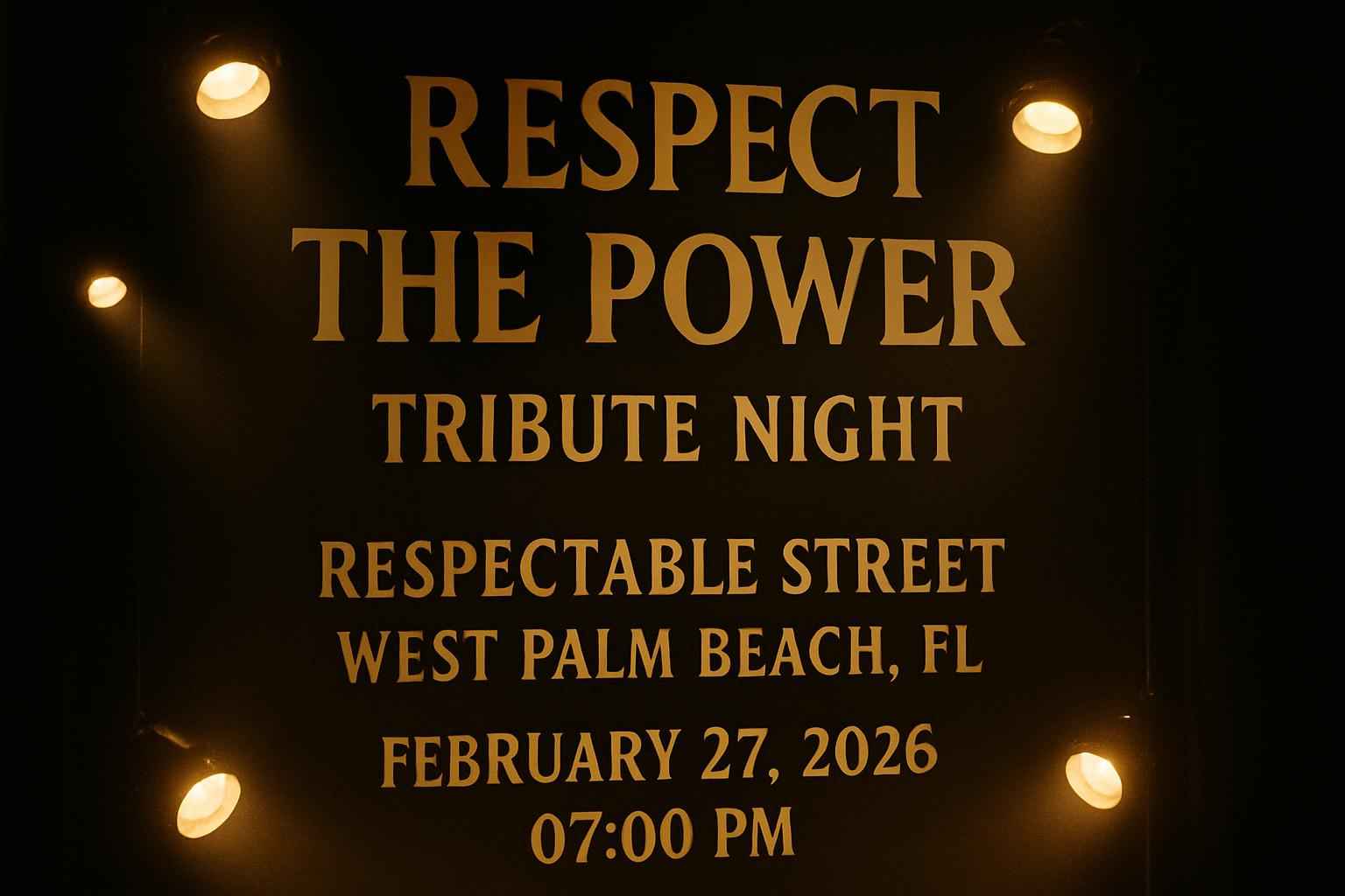 Experience an unforgettable night at Respect The Power – Tribute Night at Respectable Street in West Palm Beach FL on February 27 2026 at 7:00 PM. This unique tribute concert brings together top local musicians and passionate fans for a live music experience in one of Downtown West Palm Beachs most legendary venues. Secure the best Respect The Power Tribute Night promo codes today from RSVP Event Agency for maximum savings on your tickets.