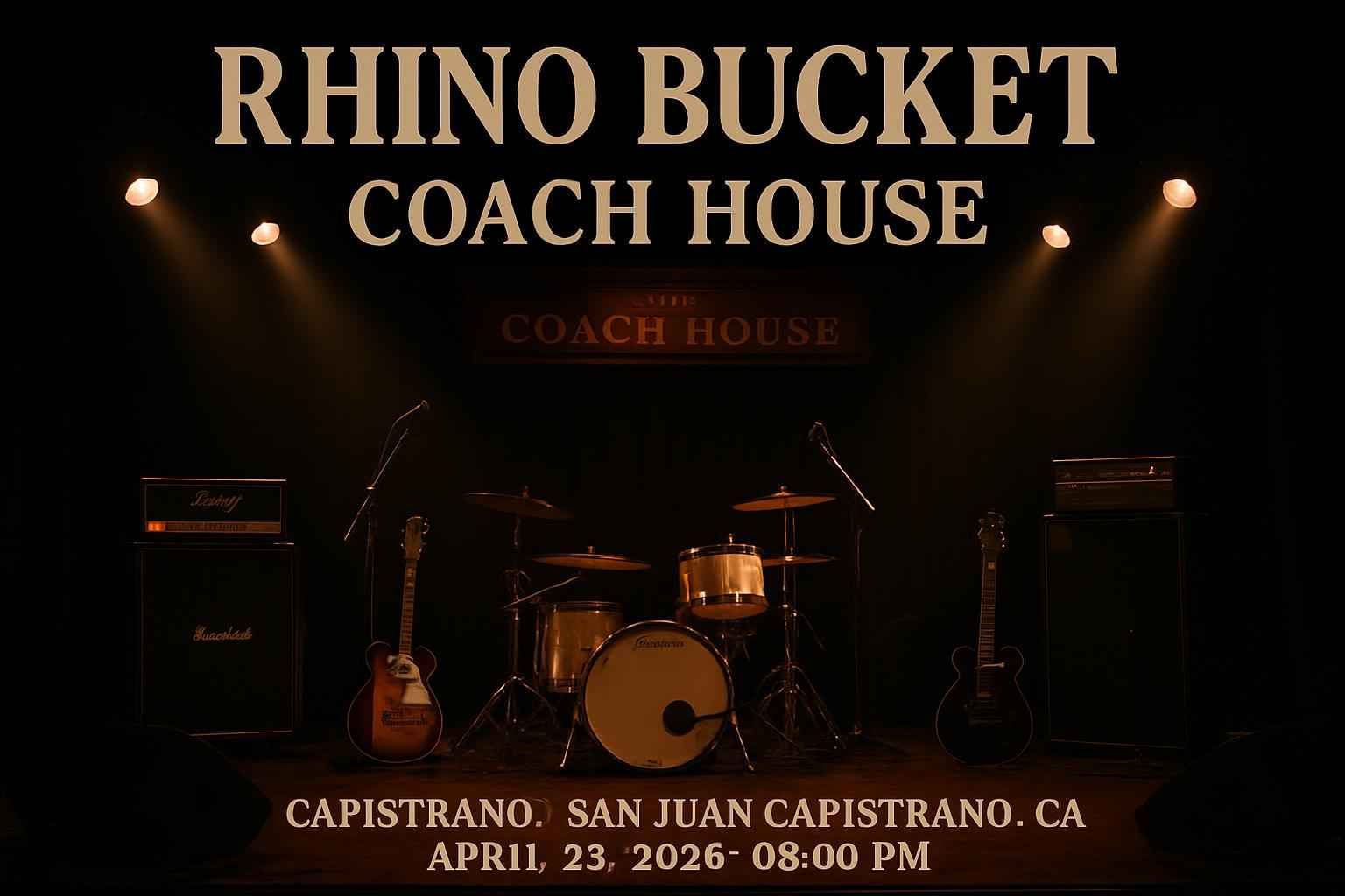 The Rhino Bucket concert at Coach House – Capistrano in San Juan Capistrano CA begins at 8 PM on April 23 2026. Doors open at 7 PM for early entry and best seating.