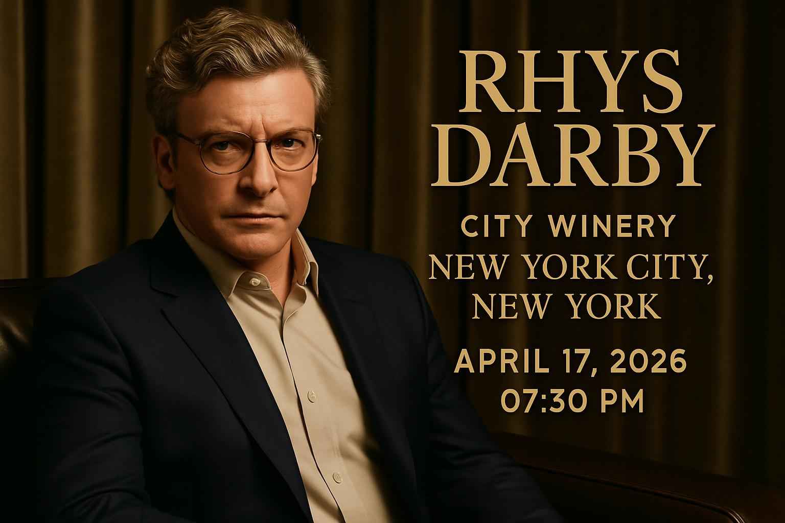 Rhys Darby brings his unique humor to City Winery located at 25 11th Ave New York NY. Doors open at 0630 PM for the 0730 PM show. Audiences searching for comedy shows in NYC 2026 or Rhys Darby performance dates will find this event delivers unforgettable entertainment. City Winery offers an intimate setting ideal for comedy fans looking for top-rated New York comedy experiences.
