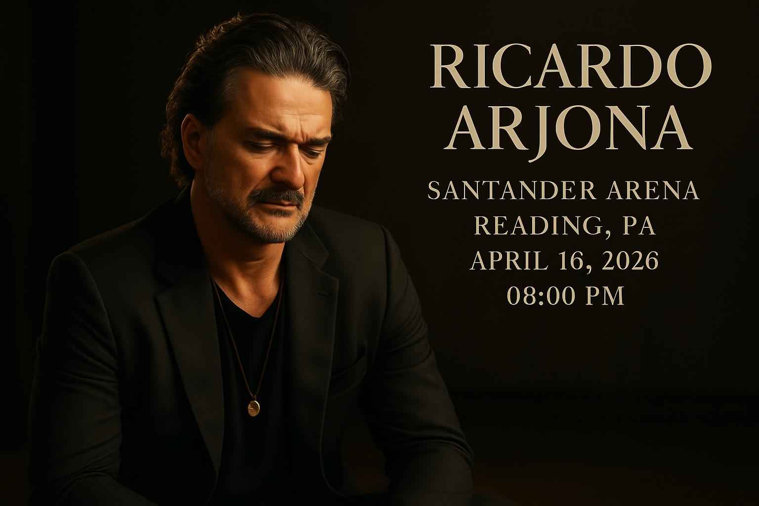 Ricardo Arjona brings his highly anticipated show to Santander Arena at 700 Penn Street Reading PA. Doors open at 7:00 PM with the performance starting at 8:00 PM. The venue is known for premium acoustics and comfortable seating. Fans can expect a setlist featuring top hits and new music. Parking is available on site and nearby. Early arrival is recommended to enjoy the full Ricardo Arjona concert experience.