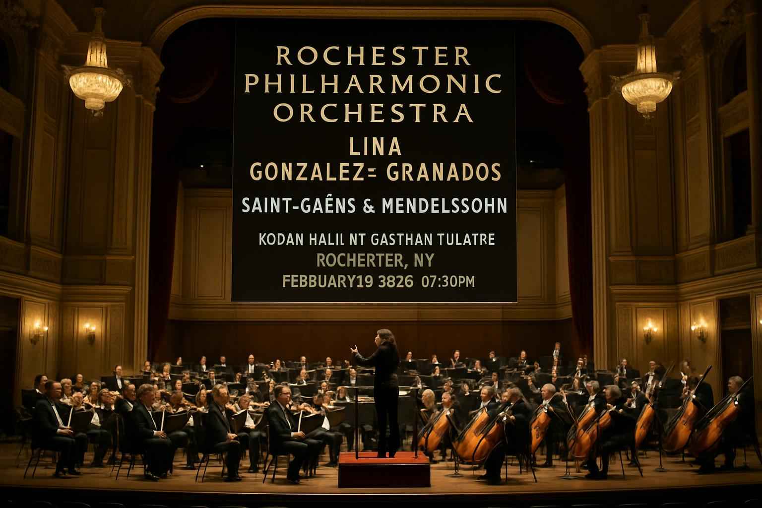 Discover the world-class Rochester Philharmonic Orchestra live as Lina Gonzales-Granados conducts Saint-Saens and Mendelssohn at Kodak Hall at Eastman Theatre in Rochester NY on February 12 2026 at 0730 PM Experience a premier orchestral event in the heart of Rochester with exclusive RSVP Event Agency coupon codes for extra savings on your tickets Secure your discount now for an unforgettable evening of classical music in a historic venue