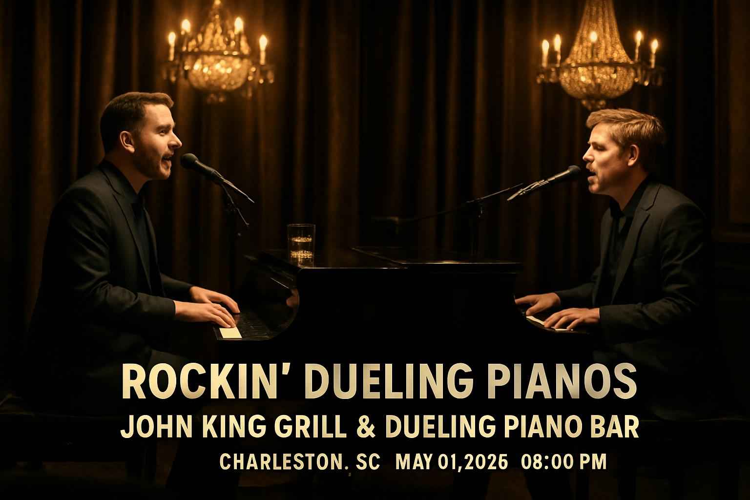 Rockin Dueling Pianos takes the stage at John King Grill & Dueling Piano Bar located at 428 King St Charleston SC 29403. The show begins at 8 PM on May 01 2026 with doors opening early for VIP guests and early arrivals. Enjoy a full menu of Southern-inspired dishes plus signature cocktails and a lively bar scene. Book your tickets through RSVP Event Agency for the latest updates and best deals on Rockin Dueling Pianos in Charleston.