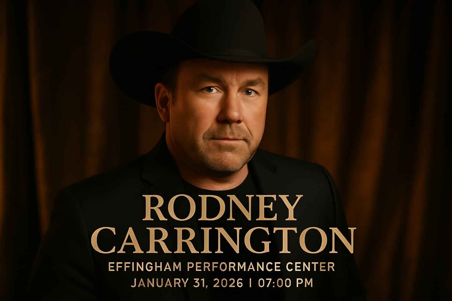 Rodney Carrington takes the stage at 07:00 PM on January 31 2026 at Effingham Performance Center.
