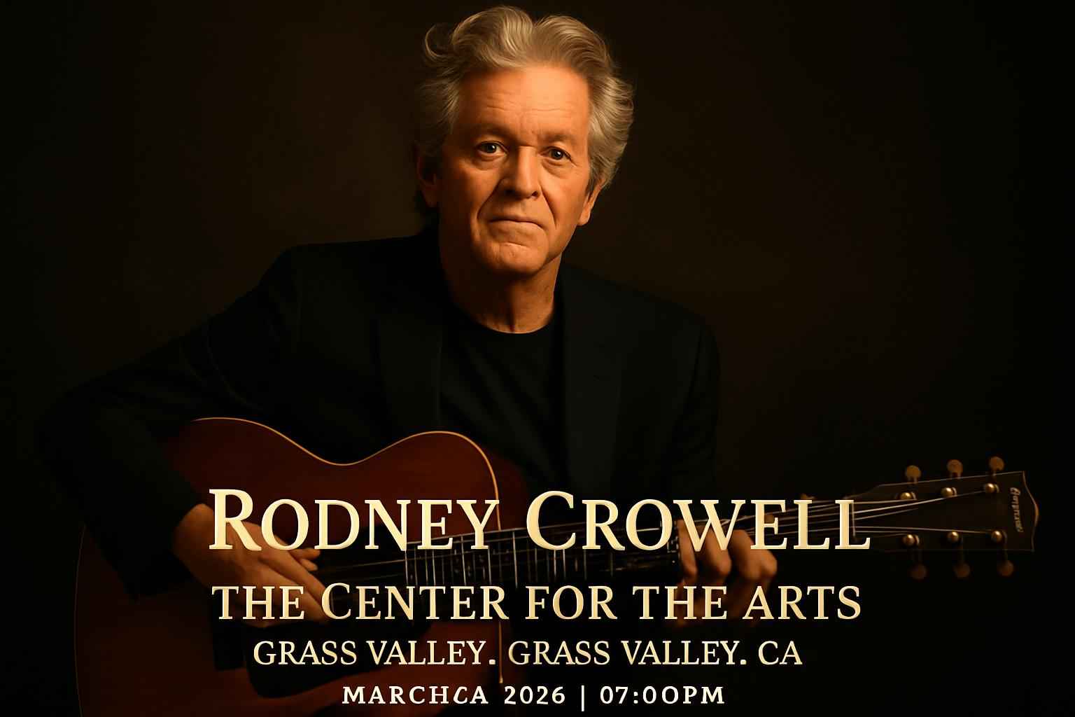 Experience legendary Americana with Rodney Crowell live at The Center For The Arts in Grass Valley CA on March 4 2026 at 7 PM. Secure exclusive savings and insider access to the best seats through RSVP Event Agency. Find verified promo codes and real-time event details to elevate your concert experience while enjoying unbeatable offers tailored for Grass Valley music fans.