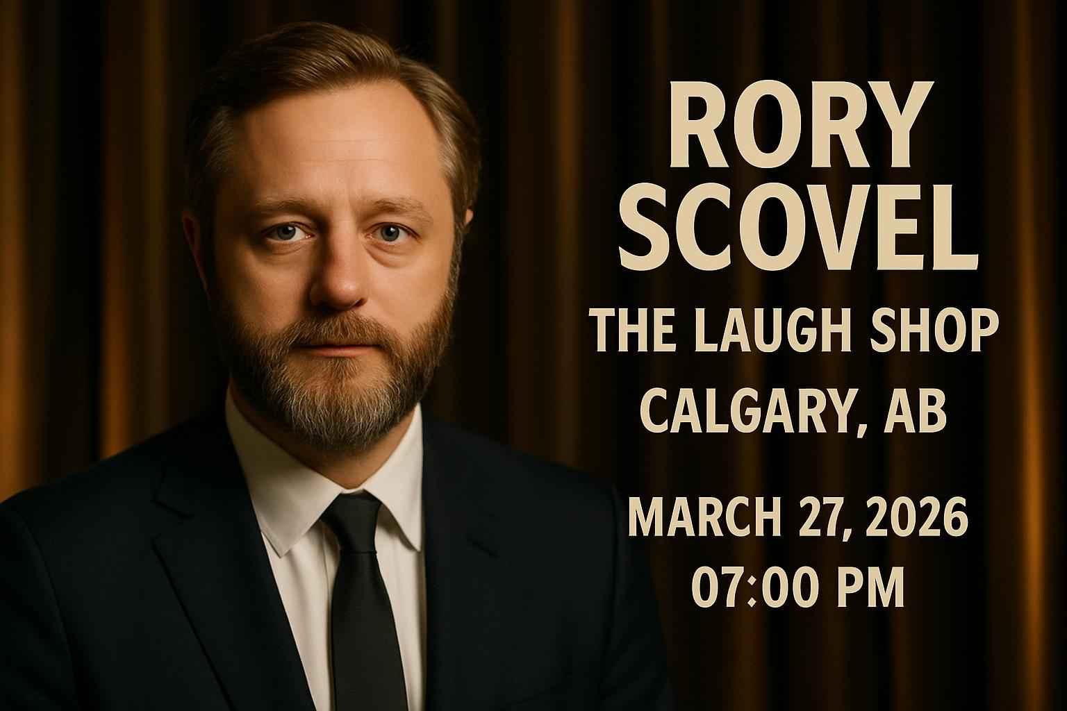 Experience stand-up comedy at its finest with Rory Scovel at The Laugh Shop in Calgary AB on March 27 2026 at 7 PM. Secure your seat for a night of laughter and discover exclusive Rory Scovel – The Laugh Shop coupon codes from RSVP Event Agency for instant ticket savings. This event brings together comedy fans and locals for a must-see performance in Calgary.