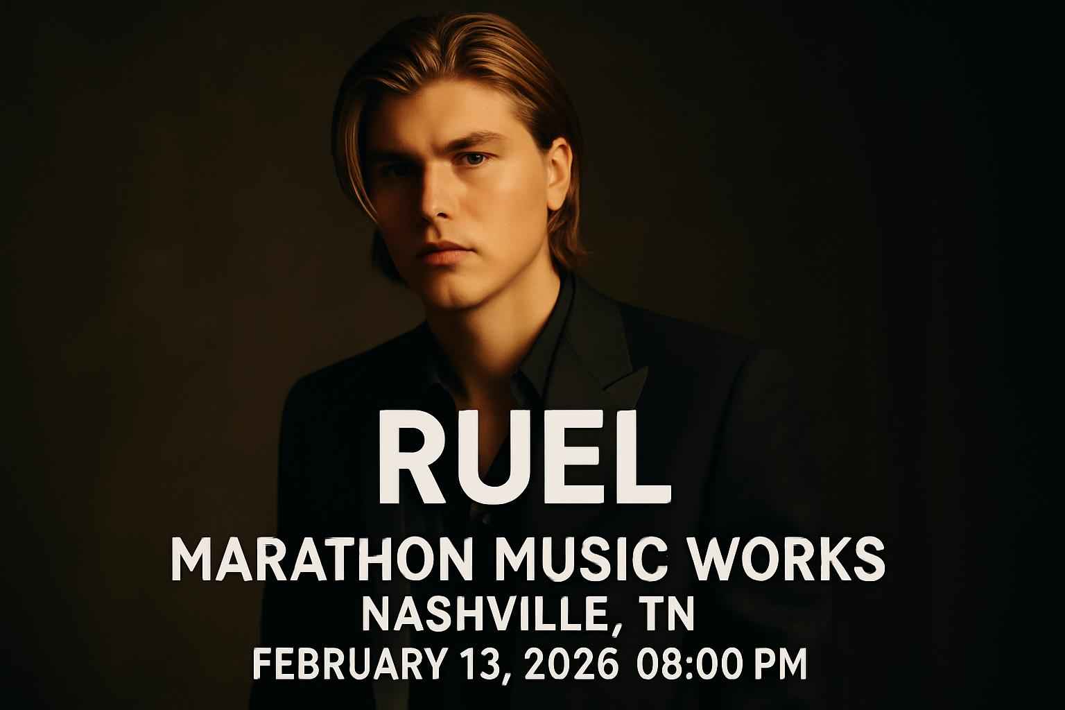 Experience the electrifying Ruel concert at Marathon Music Works in Nashville TN on February 13 2026 at 8 PM Discover exclusive Ruel Nashville coupon codes and secure the best seat deals for this highly anticipated music event with RSVP Event Agency Your trusted source for verified promo codes and event details