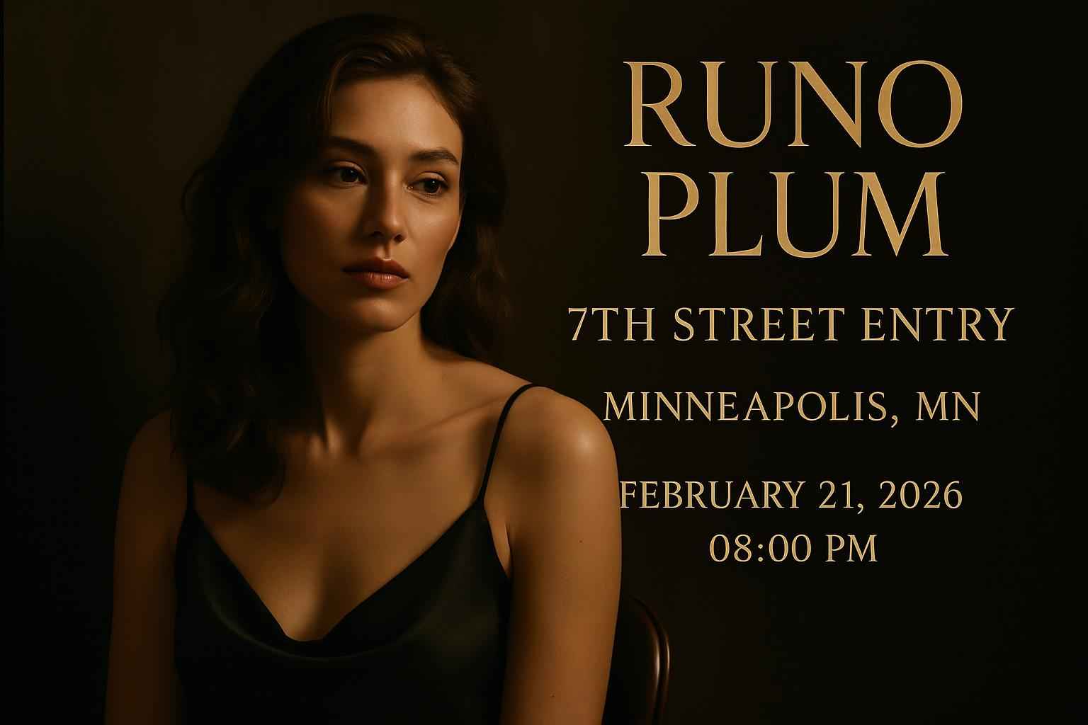 Runo Plum is scheduled to begin at 8 PM on February 21 2026 at 7th Street Entry in Minneapolis MN.