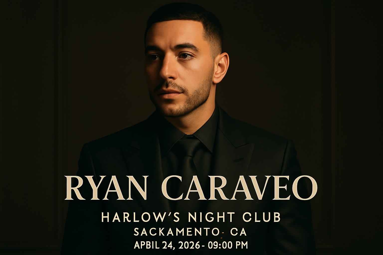 Ryan Caraveo performs live on April 24 2026 with doors opening at 0700 PM and the show starting at 0800 PM at Harlows Night Club Sacramento.