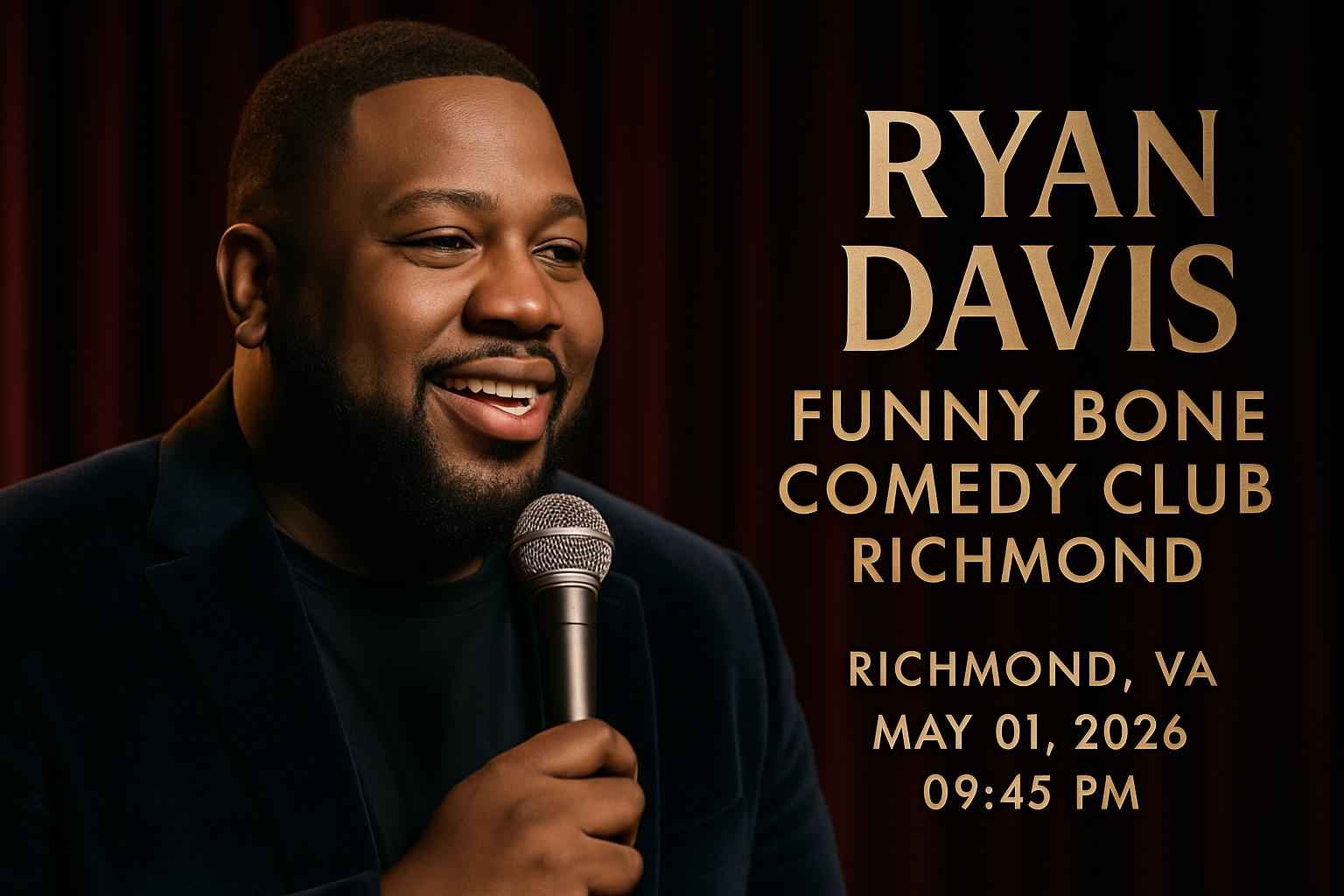 Ryan Davis brings his acclaimed stand-up tour to Richmond VA for a single performance at Funny Bone Comedy Club. Known for viral comedy and sharp observations Ryan Davis connects with audiences looking for fresh relatable humor. This Richmond show promises high-energy laughs and a vibrant comedy scene atmosphere. Explore Richmond VA nightlife and experience a local event with national talent on May 01 2026.