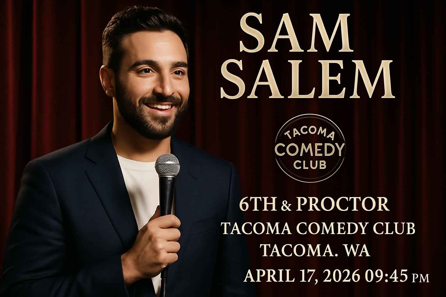 Sam Salem performs at Tacoma Comedy Club 6th and Proctor Tacoma WA on April 17 2026 at 945 PM.