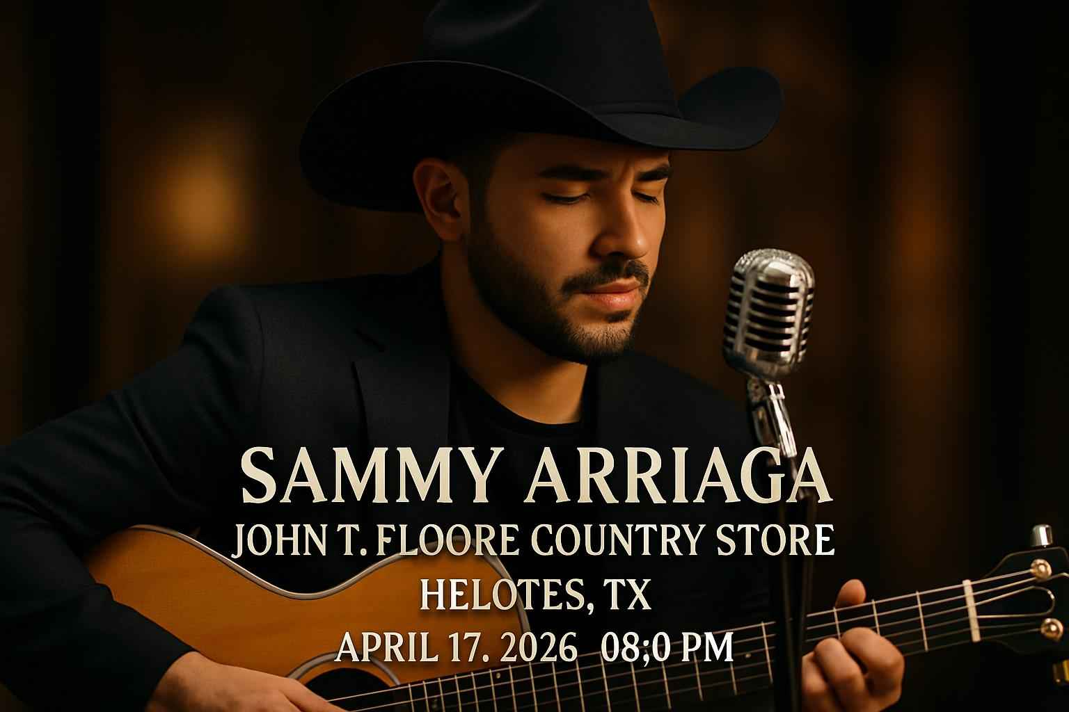Experience the vibrant sound of country music live with Sammy Arriaga at John T Floore Country Store in Helotes TX on April 17 2026 at 8:00 PM. Secure the best discount tickets and exclusive coupon codes now through RSVP Event Agency for a memorable night in the heart of Texas country music. Enjoy local entertainment with unbeatable value and limited-time savings on Sammy Arriaga concert tickets.