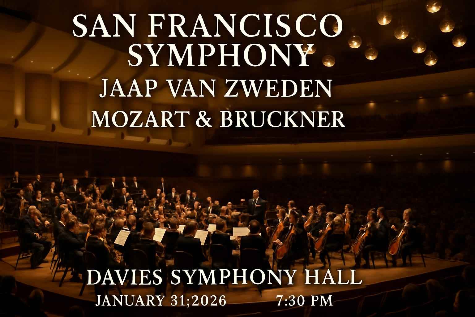 Discover the highly anticipated San Francisco Symphony: Jaap Van Zweden – Mozart & Bruckner event at Davies Symphony Hall in San Francisco CA on January 31 2026 at 7:30 PM. Experience an unforgettable night as world-renowned conductor Jaap Van Zweden leads the orchestra through masterpieces by Mozart and Bruckner. Secure your discounted tickets and maximize your savings with exclusive RSVP Event Agency promo codes tailored for Bay Area symphony fans.