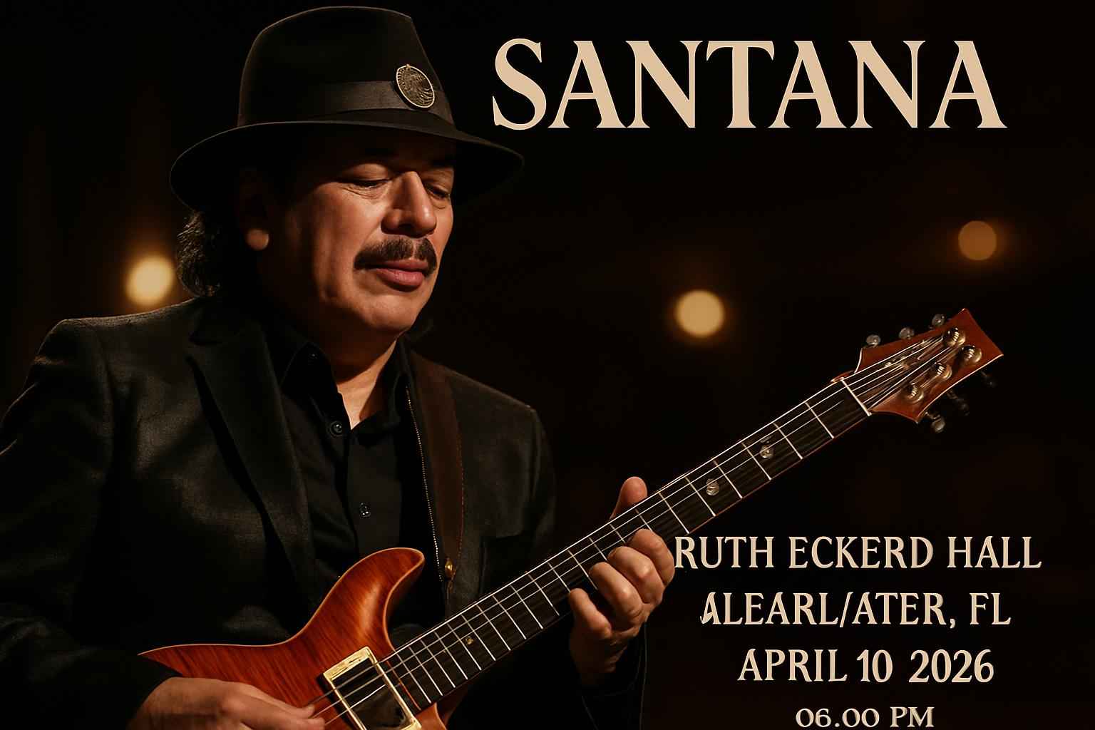 Santana brings legendary Latin rock to Ruth Eckerd Hall in Clearwater FL. The concert on April 10 2026 at 8 PM promises classic hits and new favorites in a state-of-the-art venue. Ruth Eckerd Hall is known for outstanding acoustics and prime seating options making it a popular destination for live music in Tampa Bay. Check event details seating chart and parking information to plan your Santana concert night.