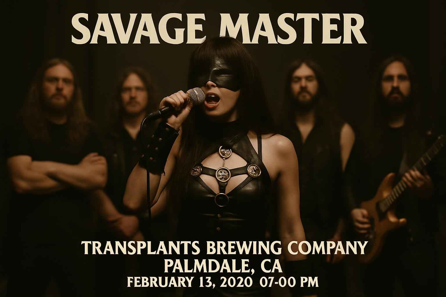 Savage Master takes the stage at 0700 PM on February 15 2026 at Transplants Brewing Company in Palmdale. Early arrival is recommended for best seating and parking.