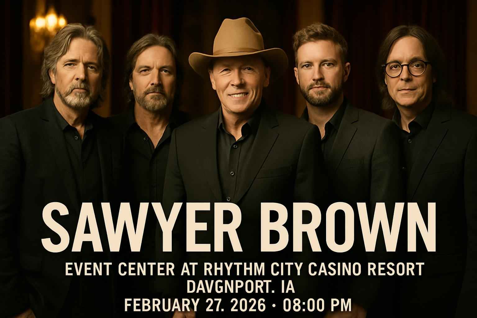 Sawyer Brown performs live at Rhythm City Casino Resort in Davenport, IA on February 27, 2026, at 8 PM. RSVP Event Agency offers exclusive verified coupon codes, premium seating, and real-time ticket availability with secure purchases. Enjoy convenient parking, ADA access, and VIP options. Book early to secure the best deals and an unforgettable country concert experience.