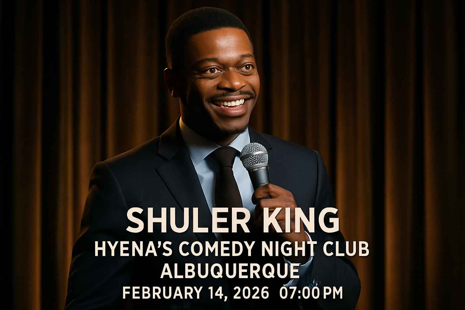 Shuler King performs live at Hyenas Comedy Night Club in Albuquerque on February 14, 2026, at 7 PM. RSVP Event Agency offers verified coupon codes for discounted tickets. The venue features accessible seating, prime location, and ample parking. Arrive early for the best seats and enjoy a top comedy experience in a lively, popular club setting.