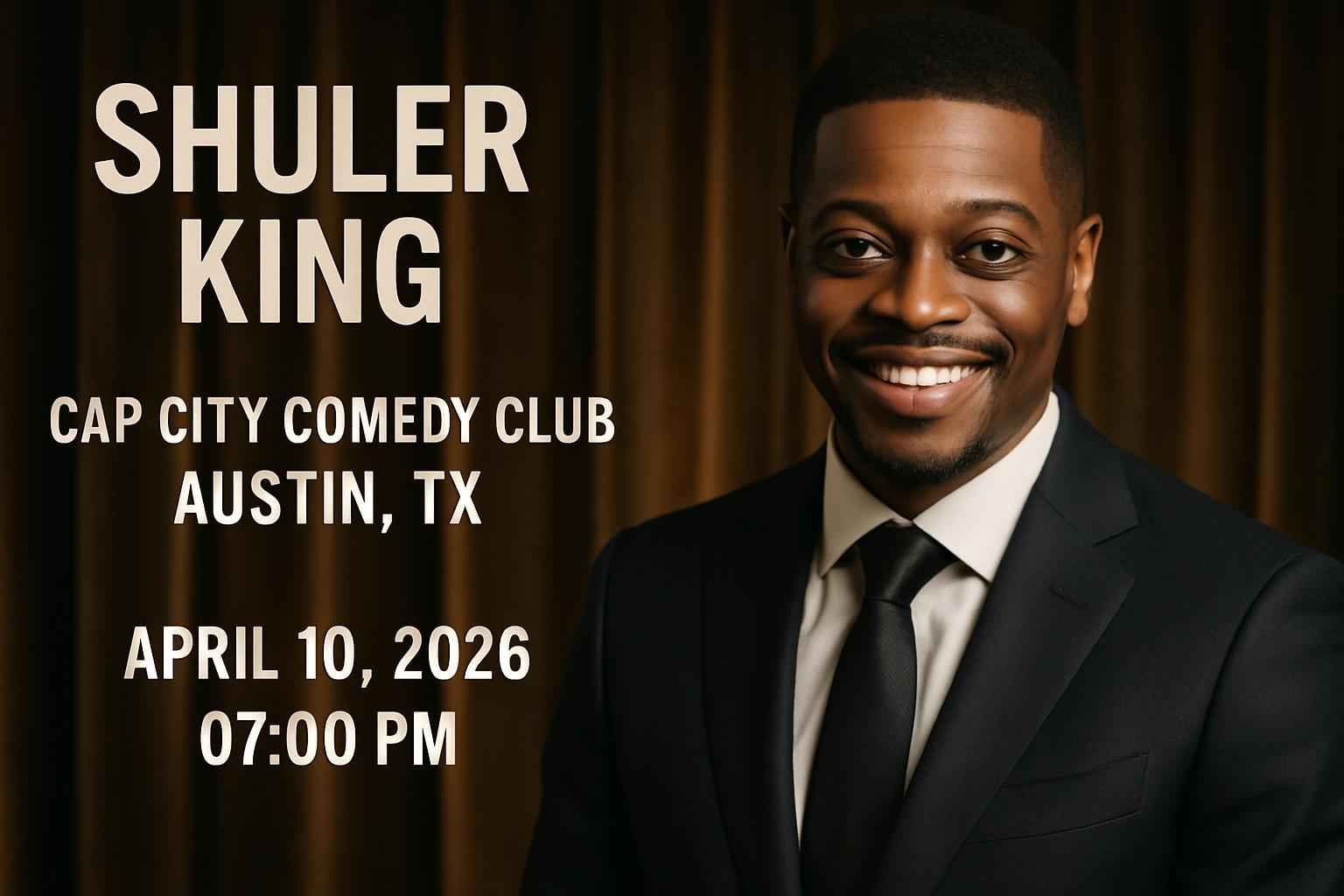 Experience a night of standout comedy with Shuler King at Cap City Comedy Club in Austin TX on April 10 2026 at 07:00 PM. Local comedy fans and visitors seek exclusive discount codes and the latest show details for this highly anticipated Austin comedy event. RSVP Event Agency delivers verified Shuler King Cap City Comedy Club promo codes so you secure the best possible value for your tickets today.