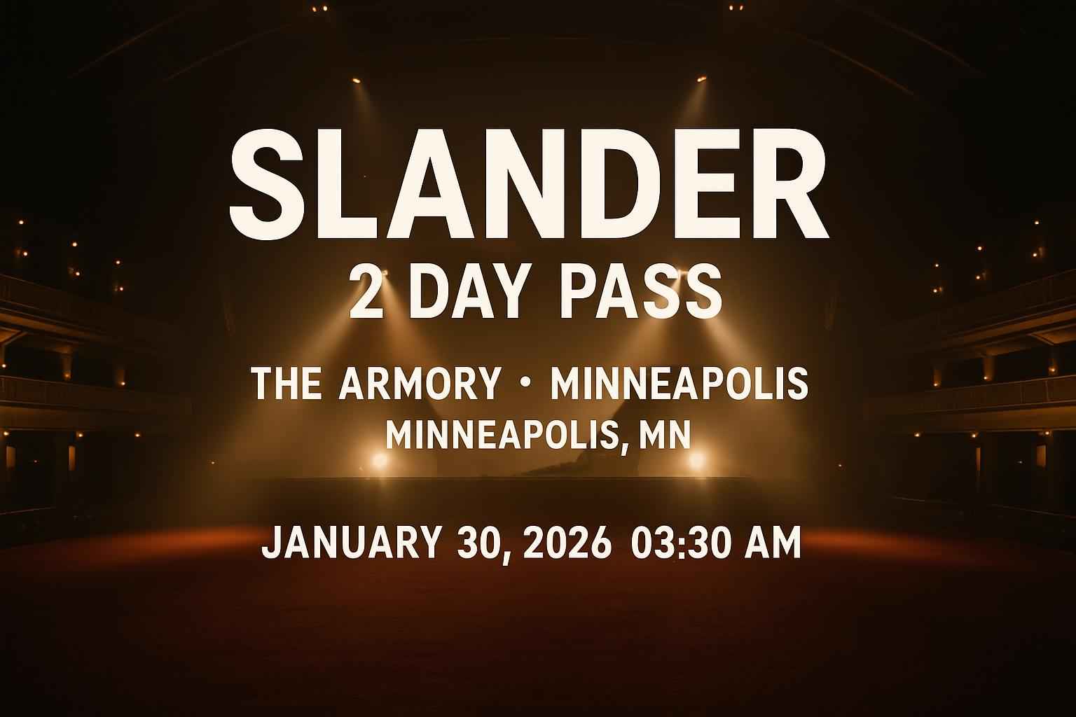 Experience Slander live with a 2 Day Pass at The Armory in Minneapolis MN on January 30 2026 at 3 30 AM. This highly anticipated electronic music event draws fans from across Minnesota seeking the best ticket deals promo codes and in-depth event details. RSVP Event Agency delivers exclusive coupon codes for Slander 2 Day Pass and trusted guidance for a seamless ticket purchase. Secure your spot at one of the top live music venues in Minneapolis and unlock the best savings today.