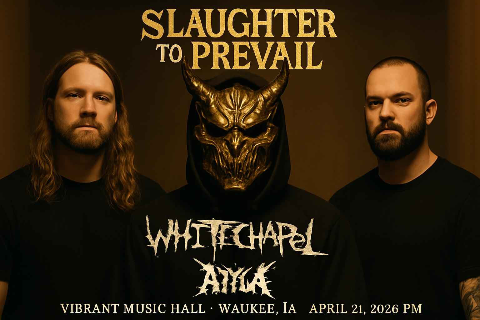 Experience the explosive energy of Slaughter to Prevail Whitechapel and Attila live at Vibrant Music Hall in Waukee IA on April 21 2026 at 0730 PM. This event brings three powerhouse metal bands together for one intense night that fans across Iowa and the Midwest will not want to miss. Secure your spot today and discover exclusive coupon codes from RSVP Event Agency for the best deals on tickets.